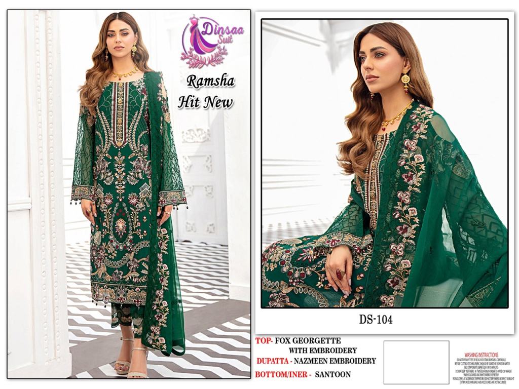 Buy Dinsaa Ramsha Hit New 104 Georgette Embriodery Pakistani Suits Collection.