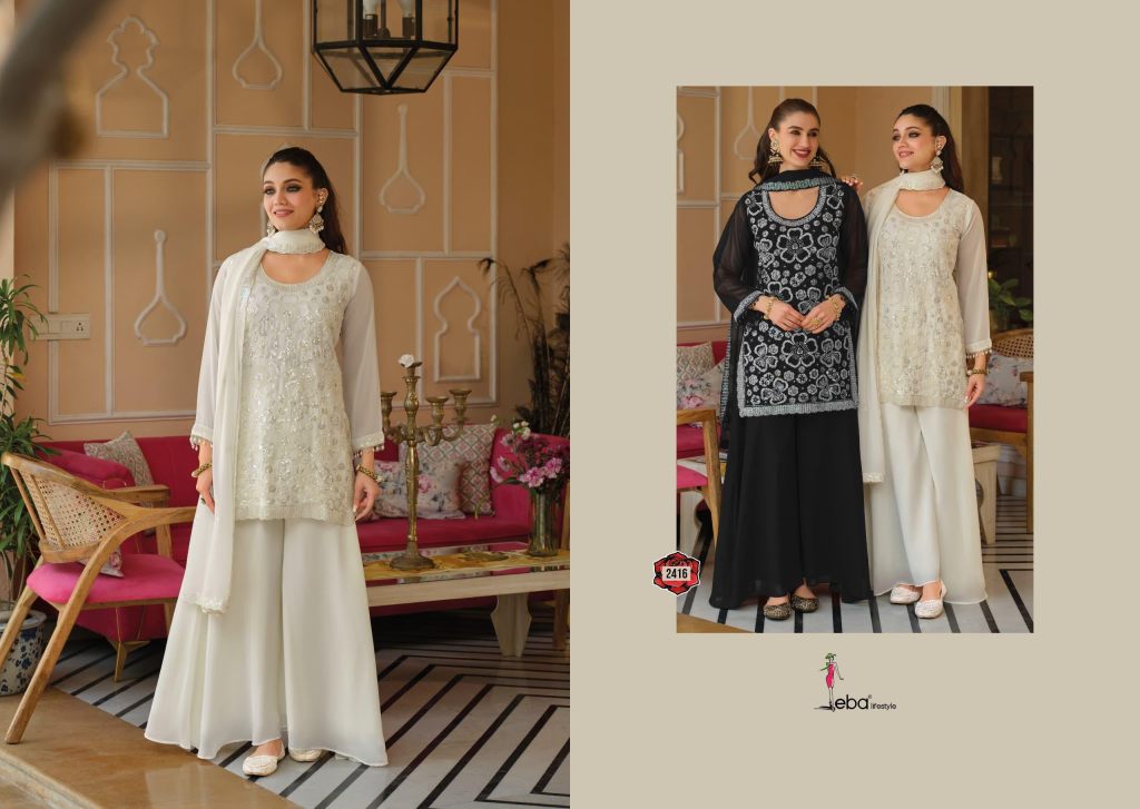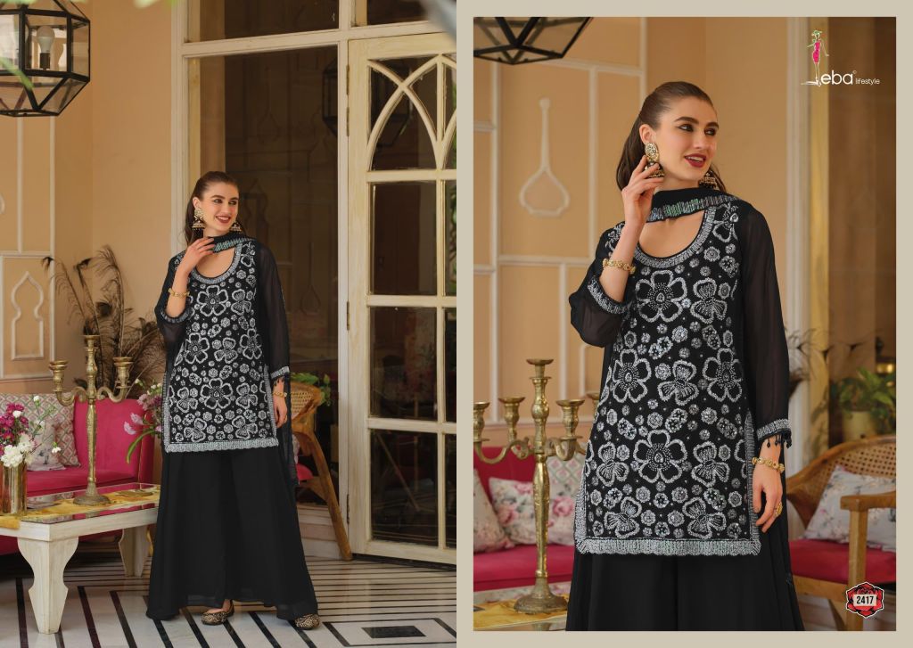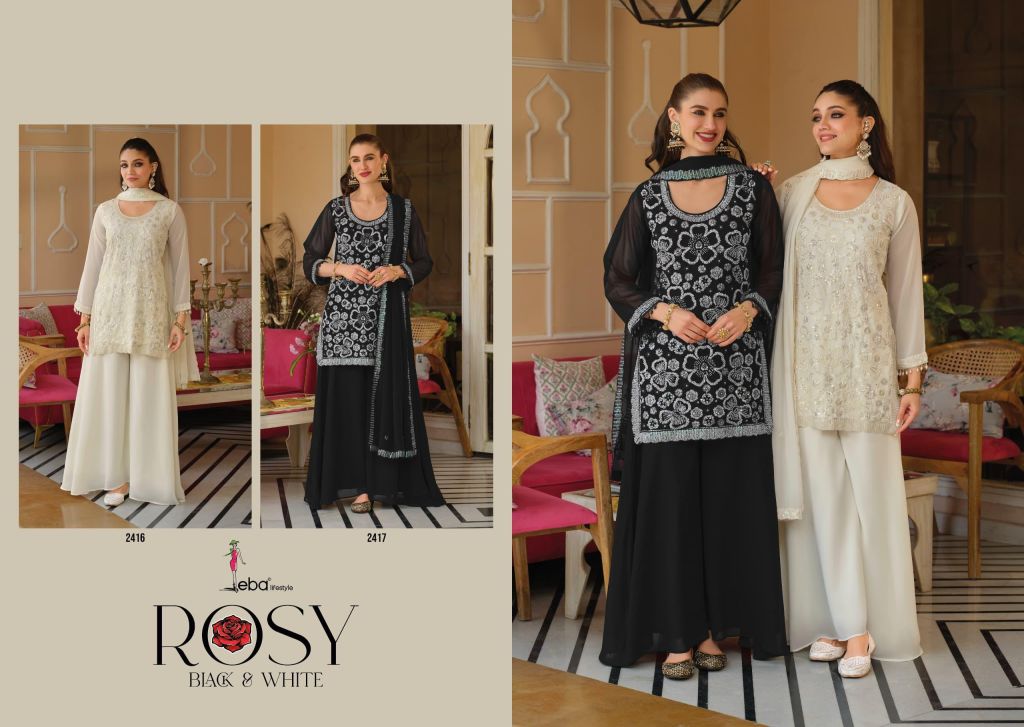 Eba Rosy Black And White Georgette With Beats Work Top Bottom And Dupatta Full Catalog