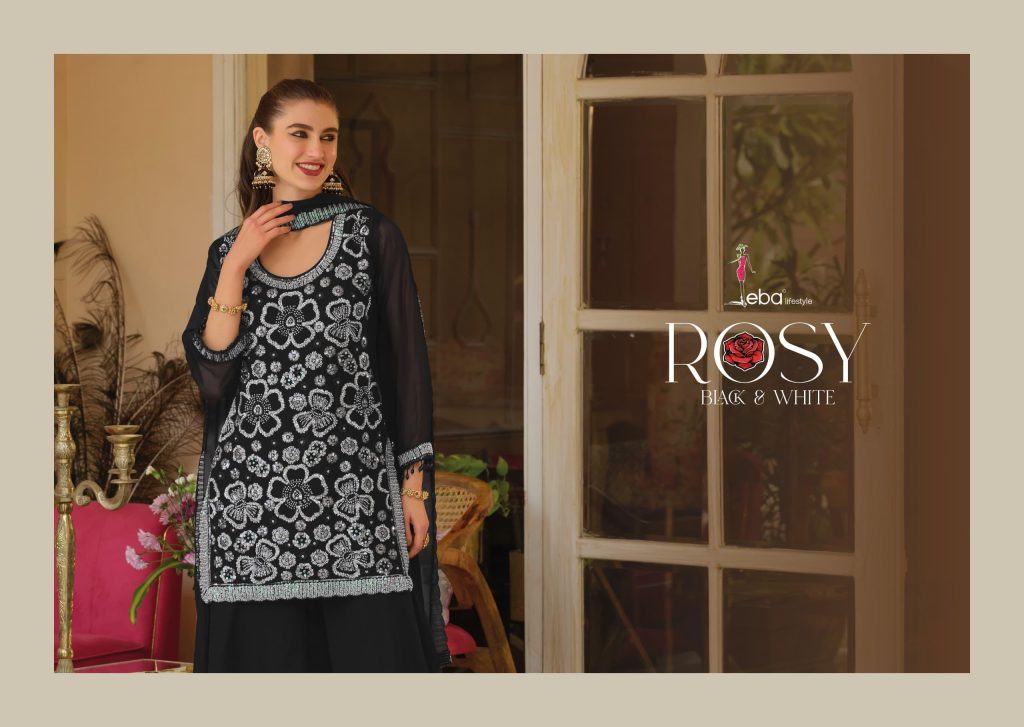 | NAME : | Eba Rosy Black And White Beats Work Top Bottom And Dupatta |