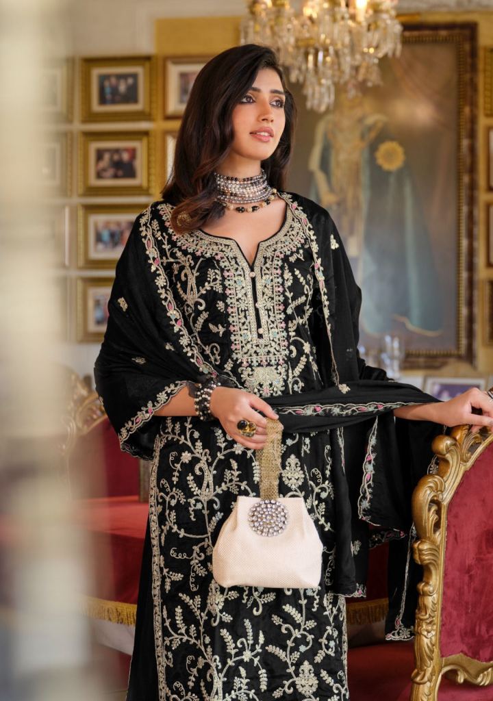 Eba Sangit Black And White Chinon Embroidery Top Bottom And Dupatta Full Catalog