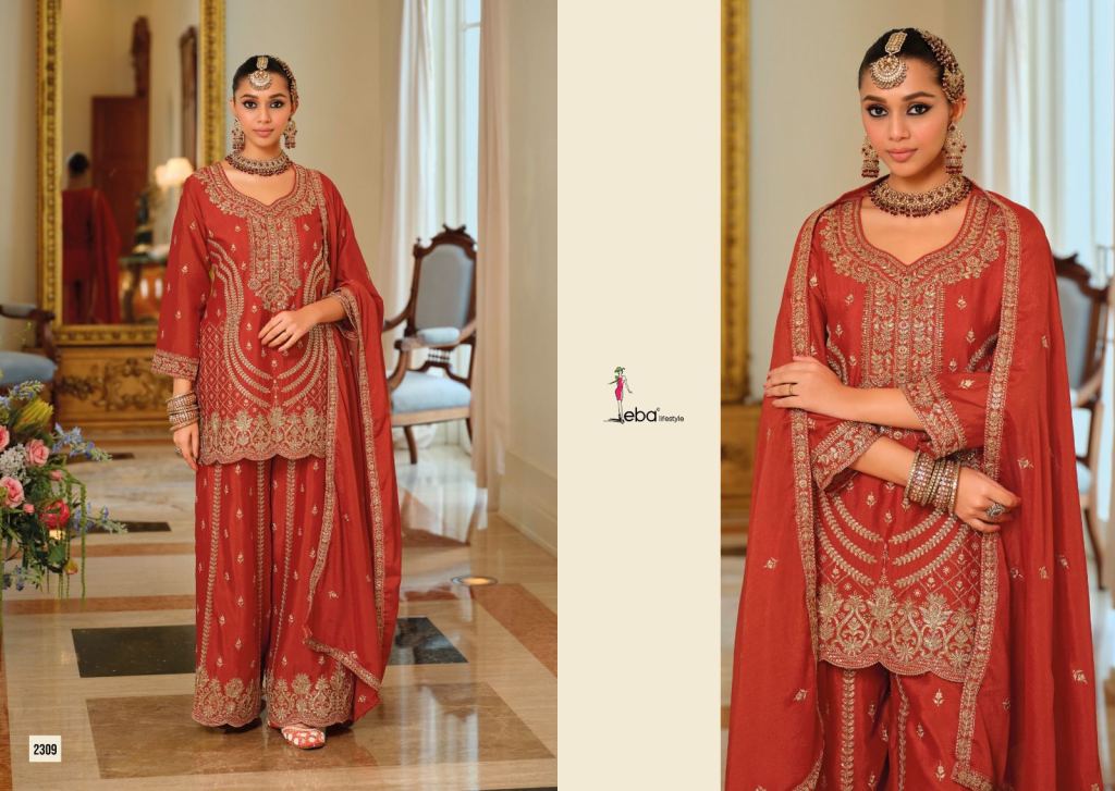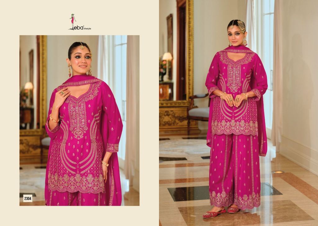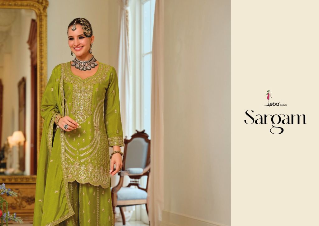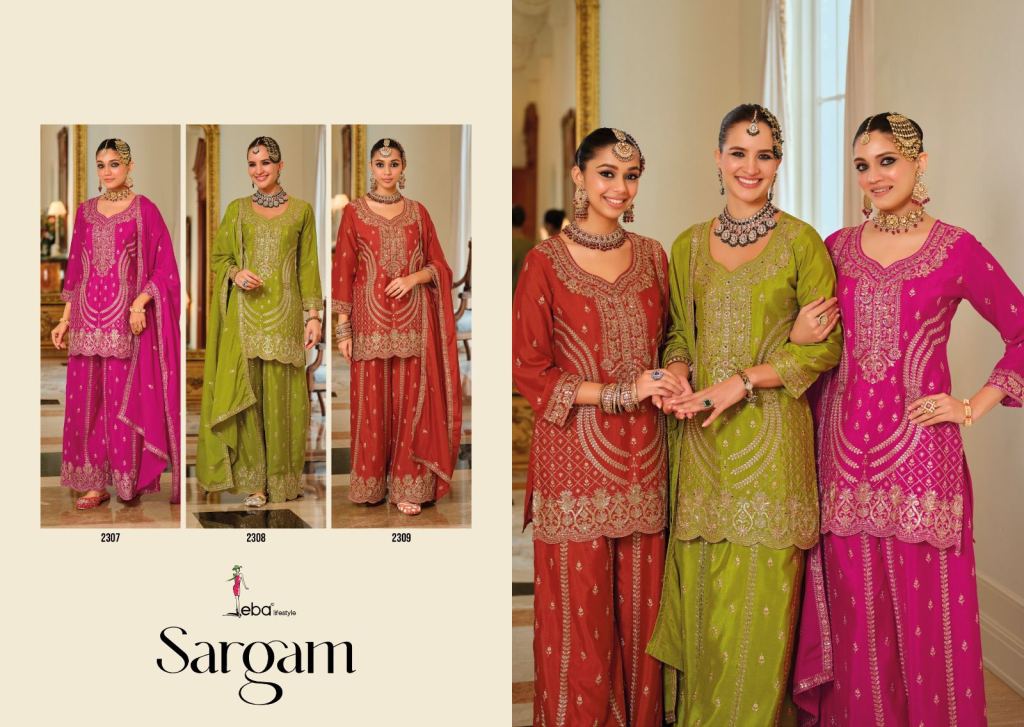 Eba Sargam Chinon With Embroidery Work Top Bottom And Dupatta Full Catalog