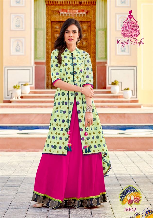 Kajal style present of best party wear kurtis . this catalogue name of fashion lakme vol 3 nx. this catalogue fabric of 14 kg heavy rayon and best heavy lawn cotton. this catalogue in full flare ghare and floor touch long gown. this catalogue is best amazing print. so available only full catalogue.....