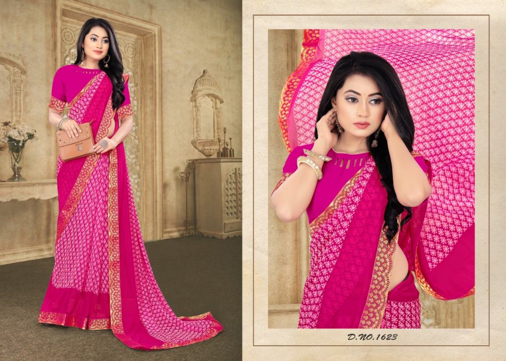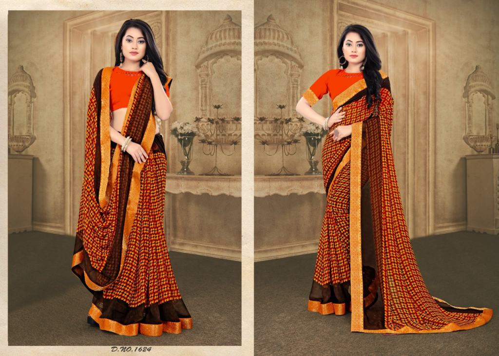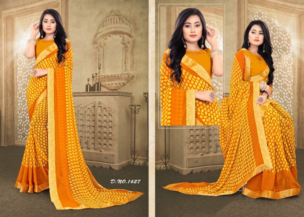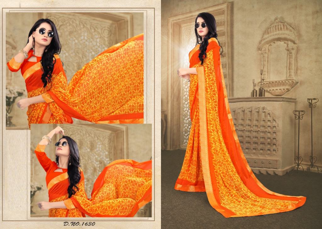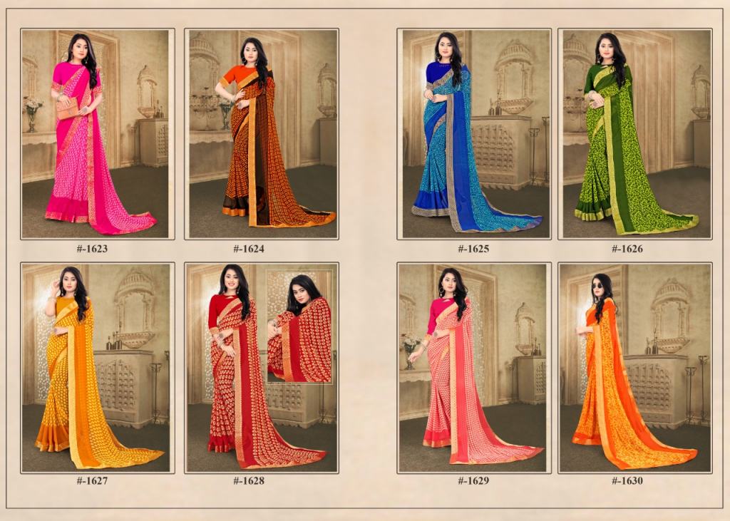 this catalog fabric is Weightless and this catalog is foil Printed product with total 8 colors and different printed with casual wear sarees catalog.