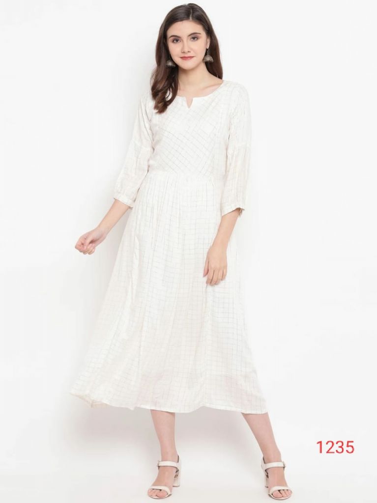 Fc presents checks-1235 latest Kurtis collection, this catalog fabric is soft cotton with full inner and Anarkali types Kurtis with white color and design checks, and this catalog set to set collection.