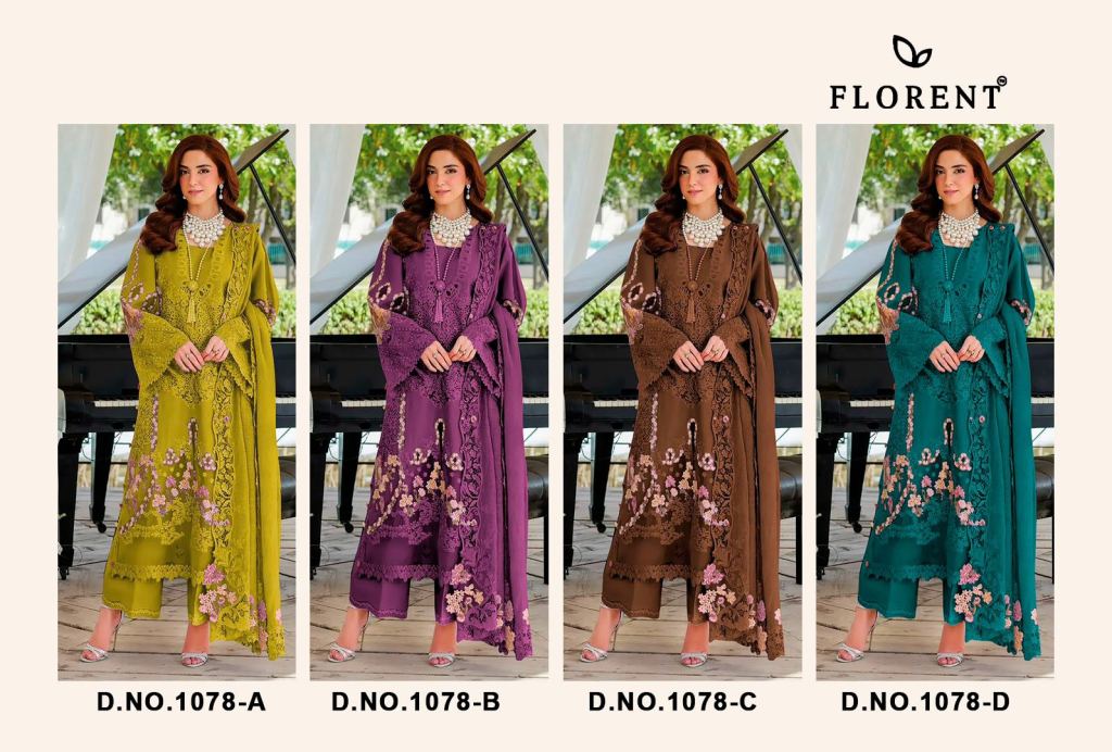 | NAME : | Florent 1078 A To D Embroidery Pakistani Salwar Kameez |