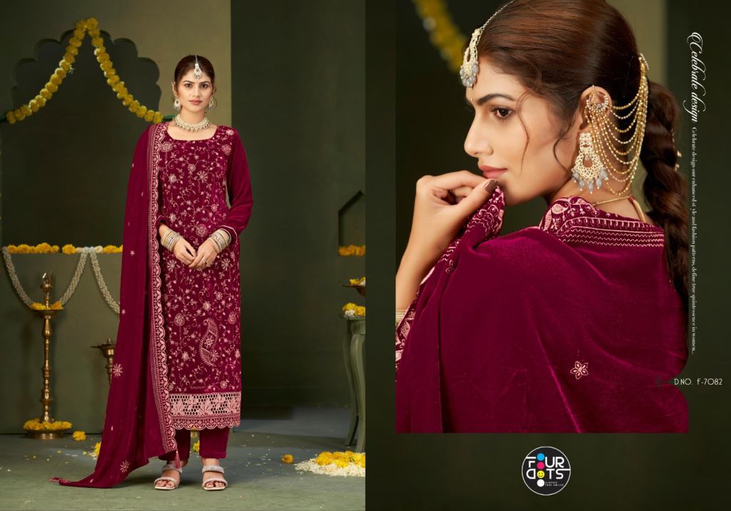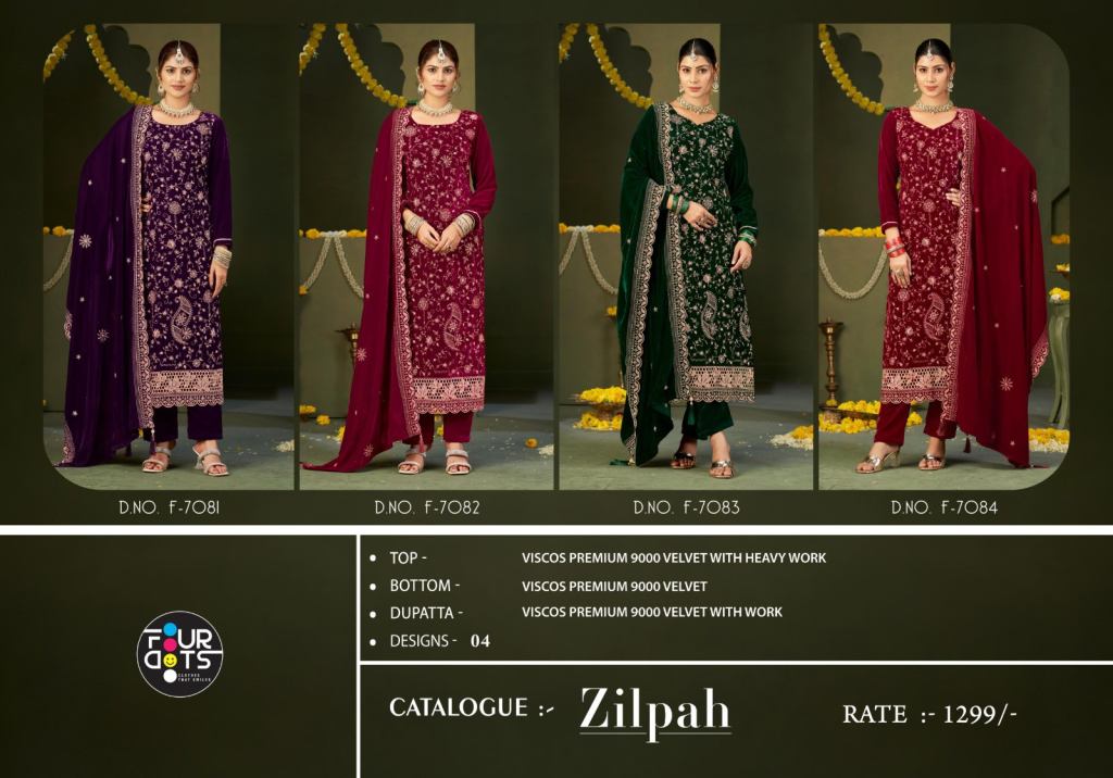 Four Dots Zilpah Viscose Velvet Work Designer Salwar Kameez Suits Full Catalog