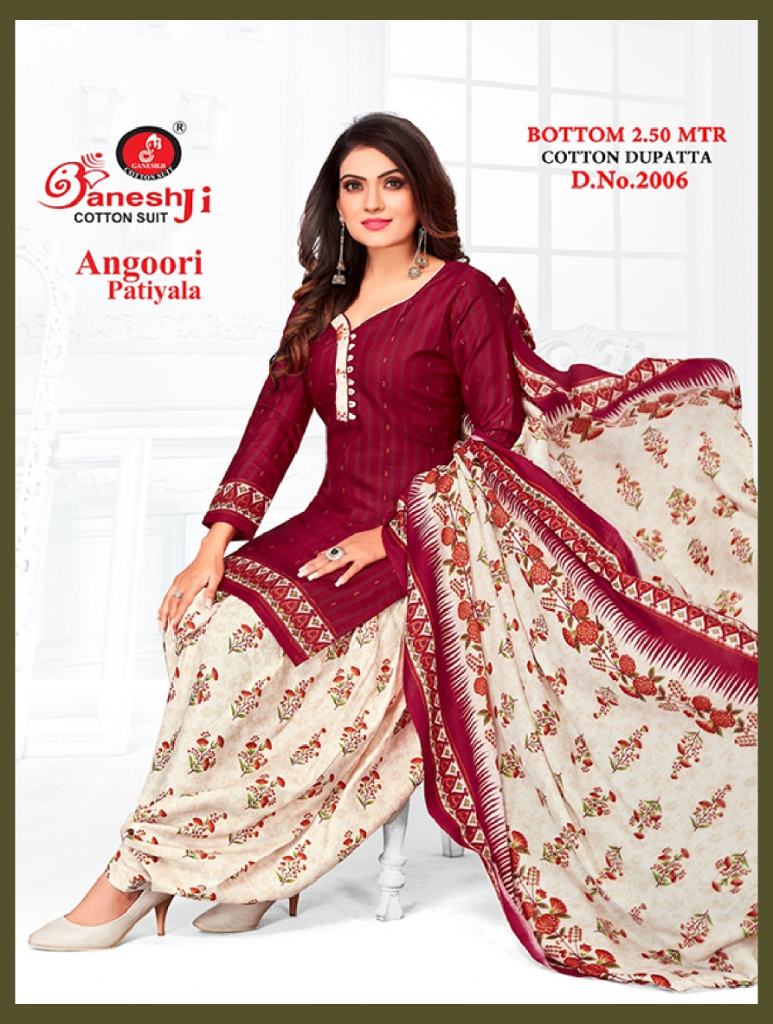 Ganeshji Angoori Patiyala vol 2 Indo cotton Printed Cotton Buy Ladies Cotton Dress Materials, Heavy Indo Cotton Printed (2.0 Mtr) with Bottom fabric is Indo Cotton Printed (2.30 Mtr) and Dupatta fabric is Indo Cotton Printed (2.0 Mtr).