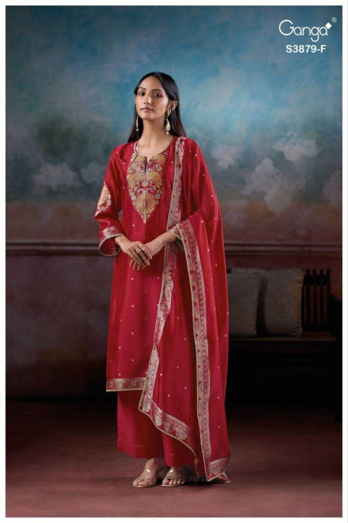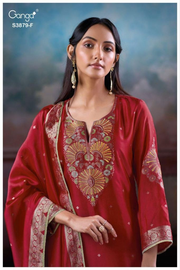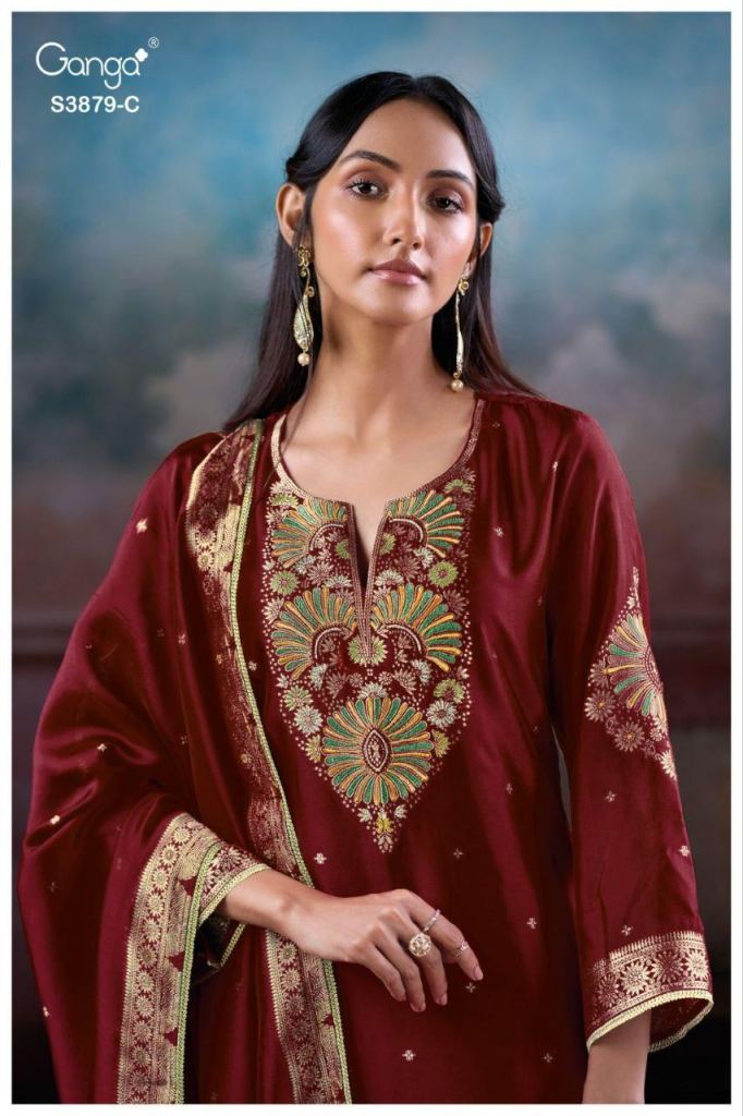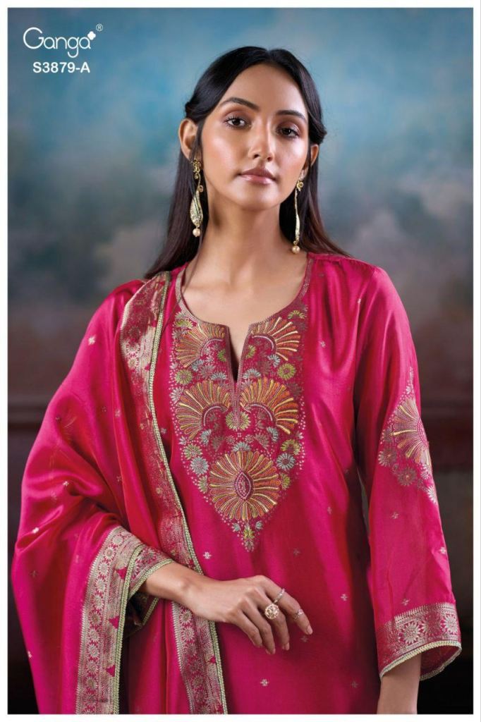 Ganga Avry 3879 Viscose Silk Jacquard Embroidery Work Salwar Kameez