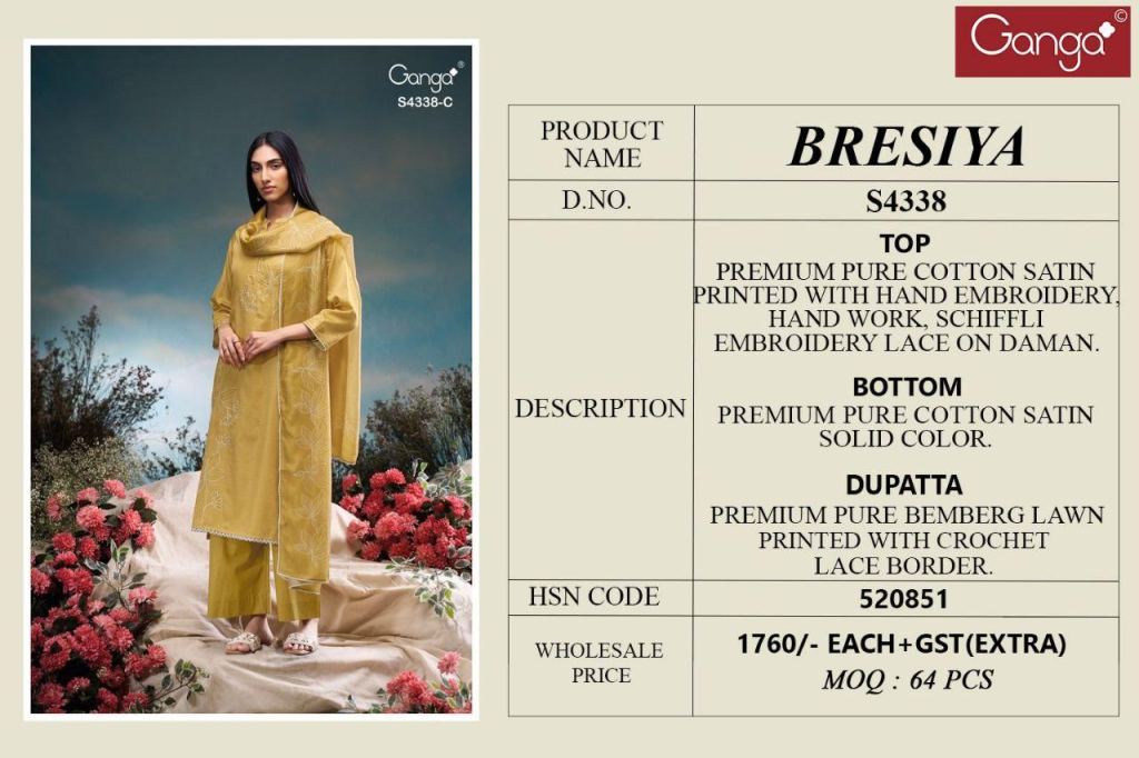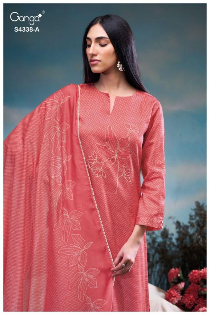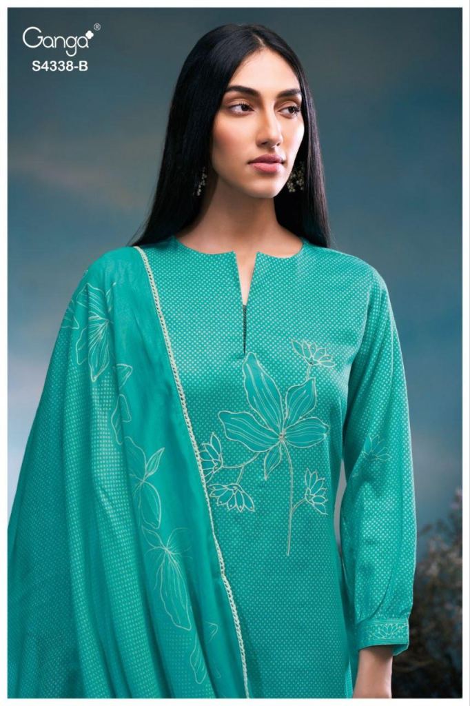 Ganga Bresiya 4338 Cotton Printed Embroidery Work Salwar Kameez Full Catalog