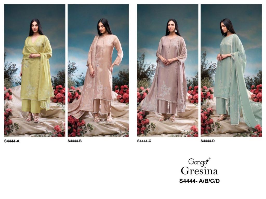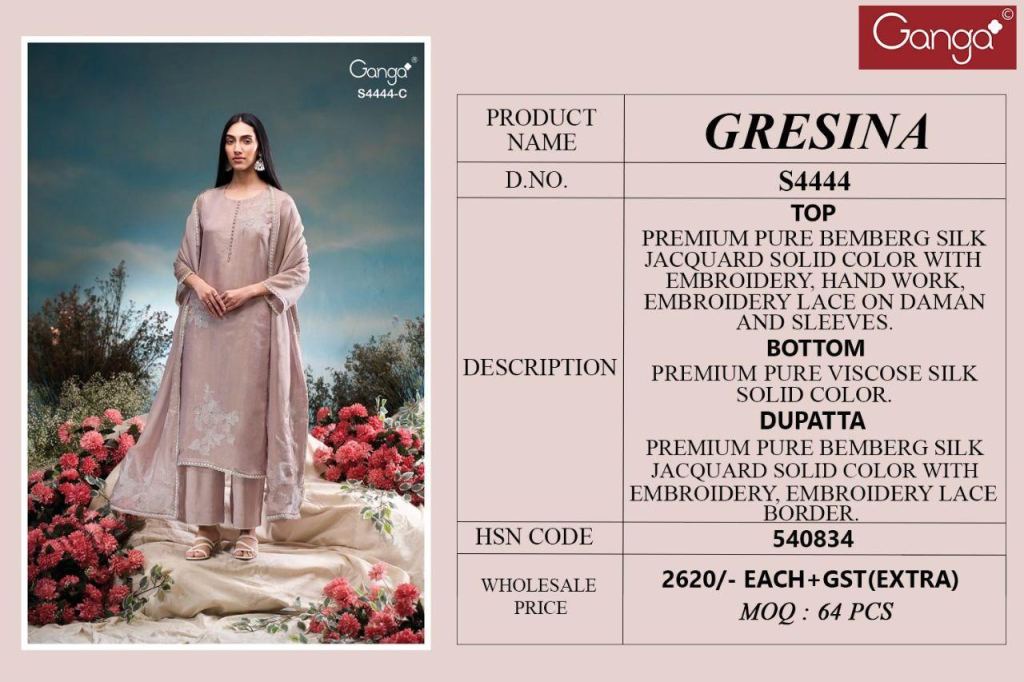 Ganga Gresina 4444 Bemberg Silk Embroidery Work Dress Material Full Catalog