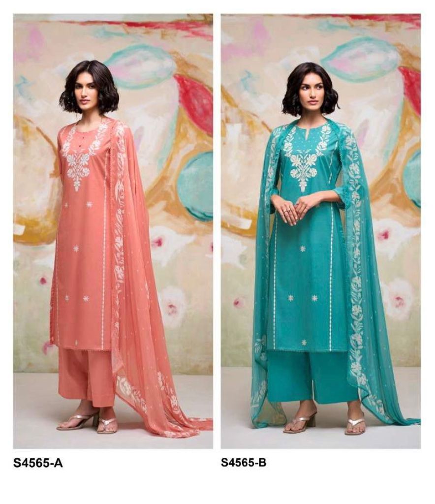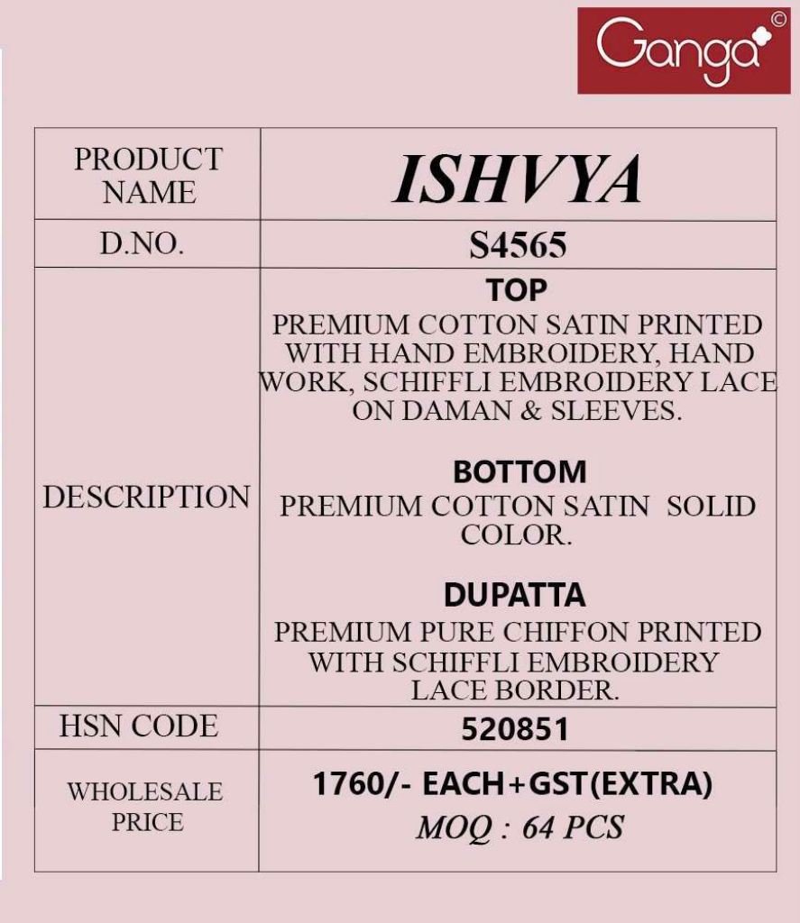 Ganga Ishvya 4565 Cotton Satin Hand Embroidery Dress Material Full Catalog