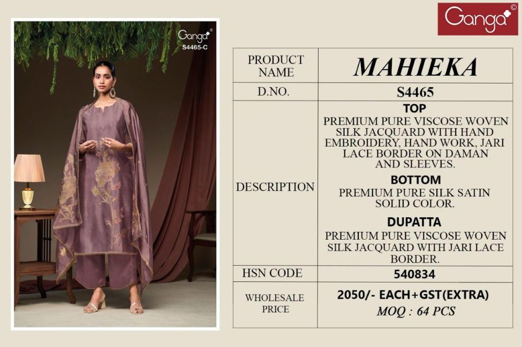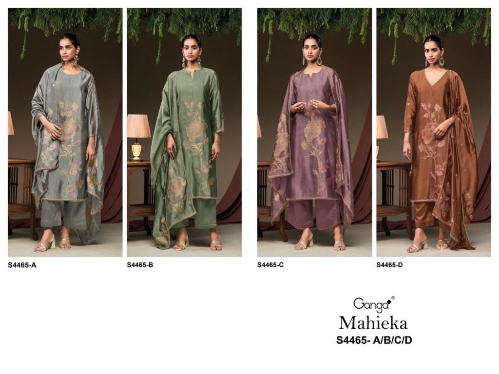 Ganga Mahieka 4465 Viscose Silk With Handwork Dress Material Full Catalog