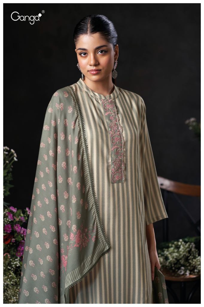 Ganga Nirelle 3878 Wool Pashmina Embroidery Kurti Pant And Dupatta Full Catalog