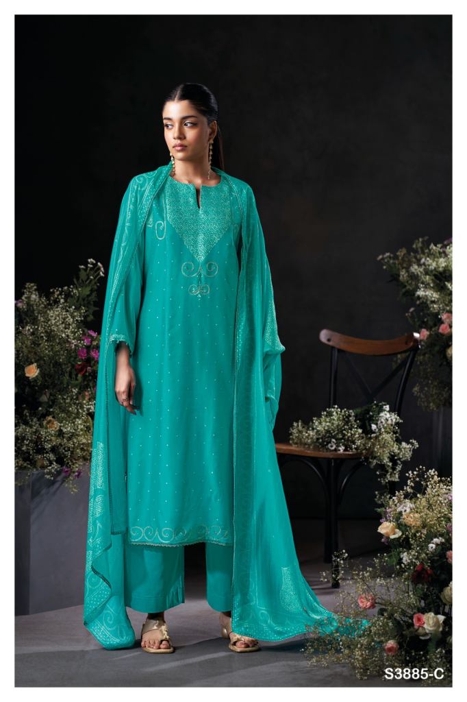 Ganga Oceara 3885 Bemberg Russian Embroidery Work Salwar Kameez Full Catalog