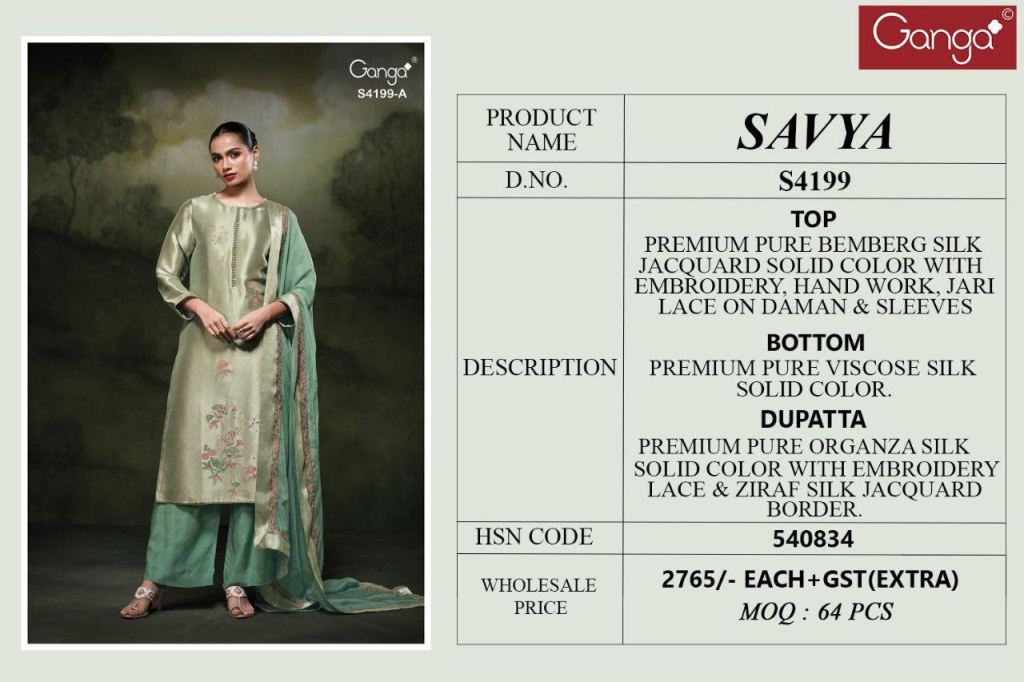 Ganga Savya 4199 Bemberg Silk Embroidery Work Salwar Kameez Full Catalog