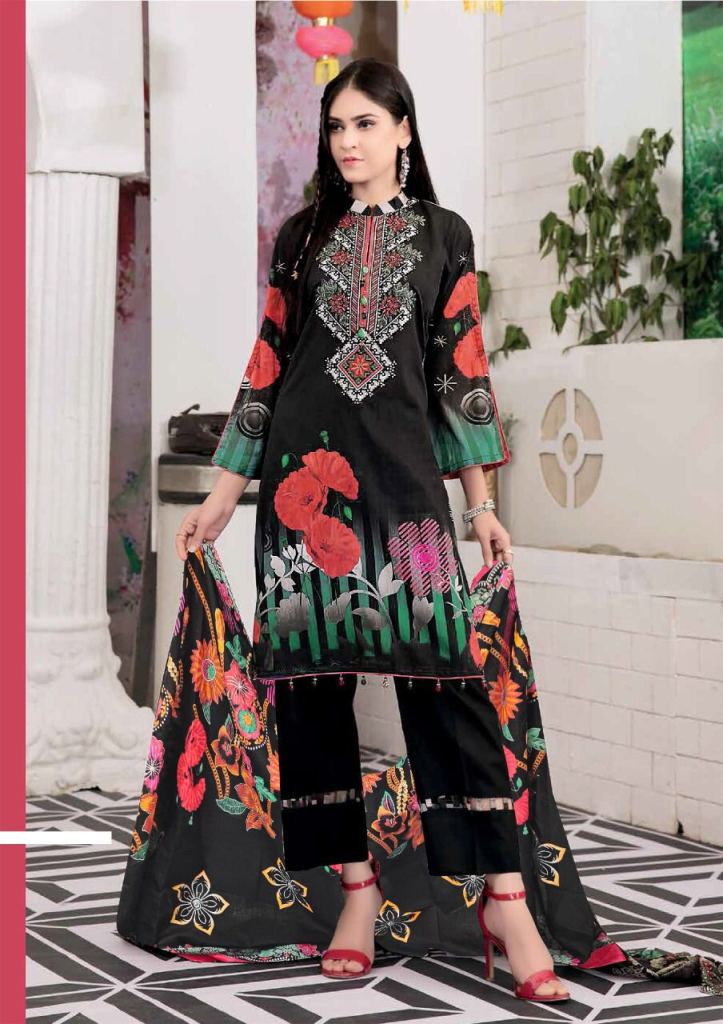 Pure Lawn Cotton (2.40 Mtrs) | Bottom: Pure Lawn Cotton (2.0 Mtrs) | Dupatta: Heavy Cotton Printed (2.25 Mtrs) and this catlog design are different with a fancy print, Karachi cotton dress material.