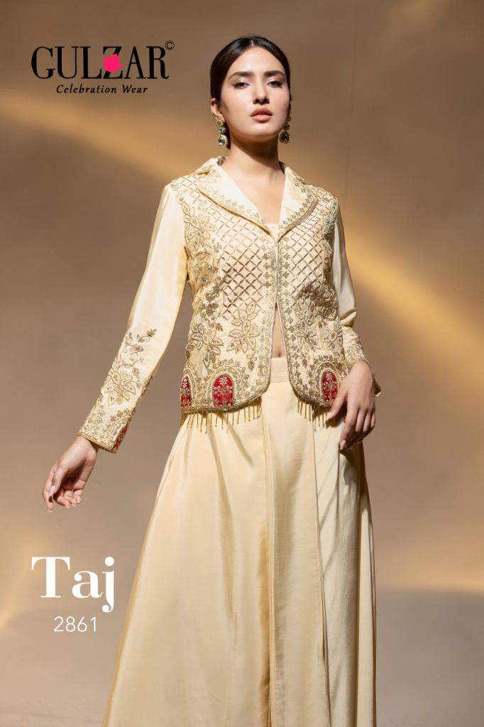 Gulzar Taj Crepe Beautiful Beads Work Designer Top And Bottom Collection Full Catalog