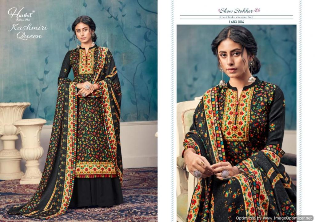 Harshit presents Kashmiri Queen pashmina collection, this catalog total of ten designs some little with patterns will be various, and this catalog top is Pure Wool Pashmina Digital Kashmiri Print with the bottom is Pure Wool Pashmina Solid with dupatta is Pure Wool Pashmina Digital Print.