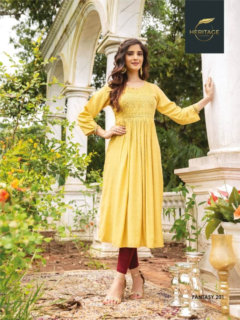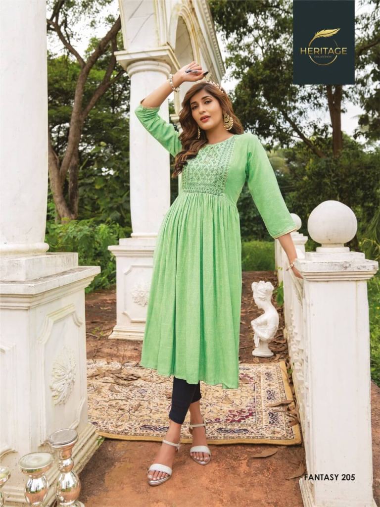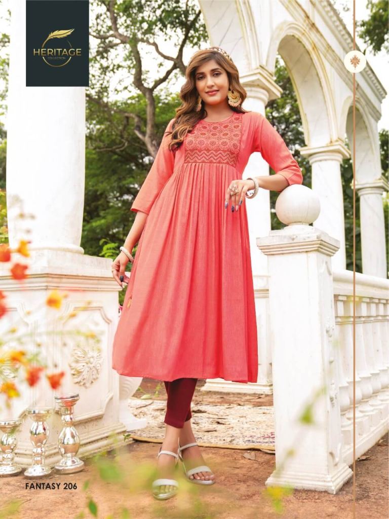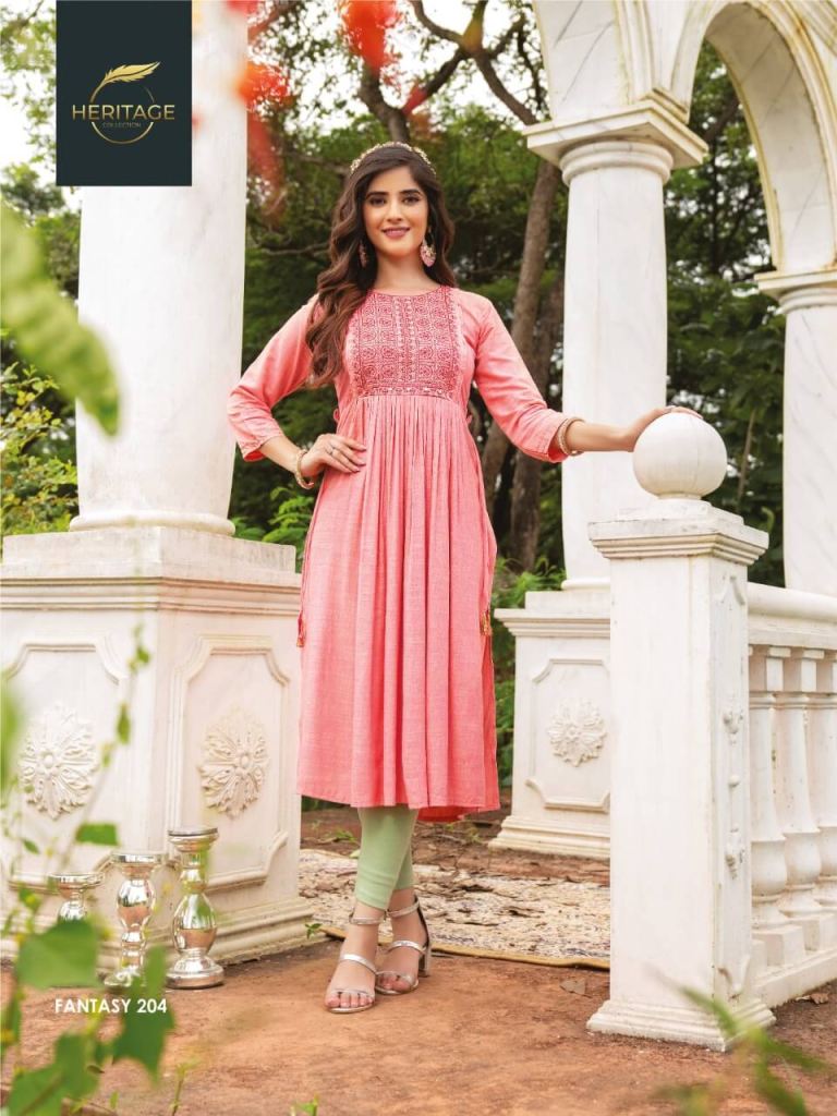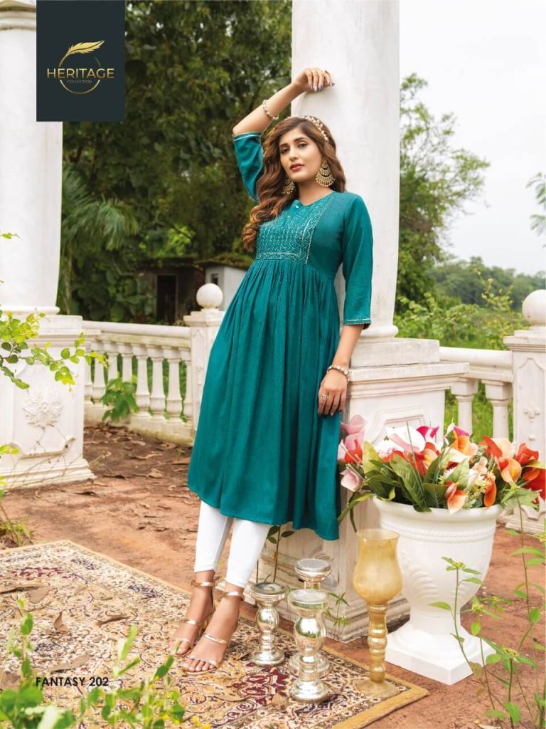 Heritage Fantasy vol 2 Embroidery Kurtis Collection, this catalogue fabric is rayon heavy soft viscose liquid length: 46