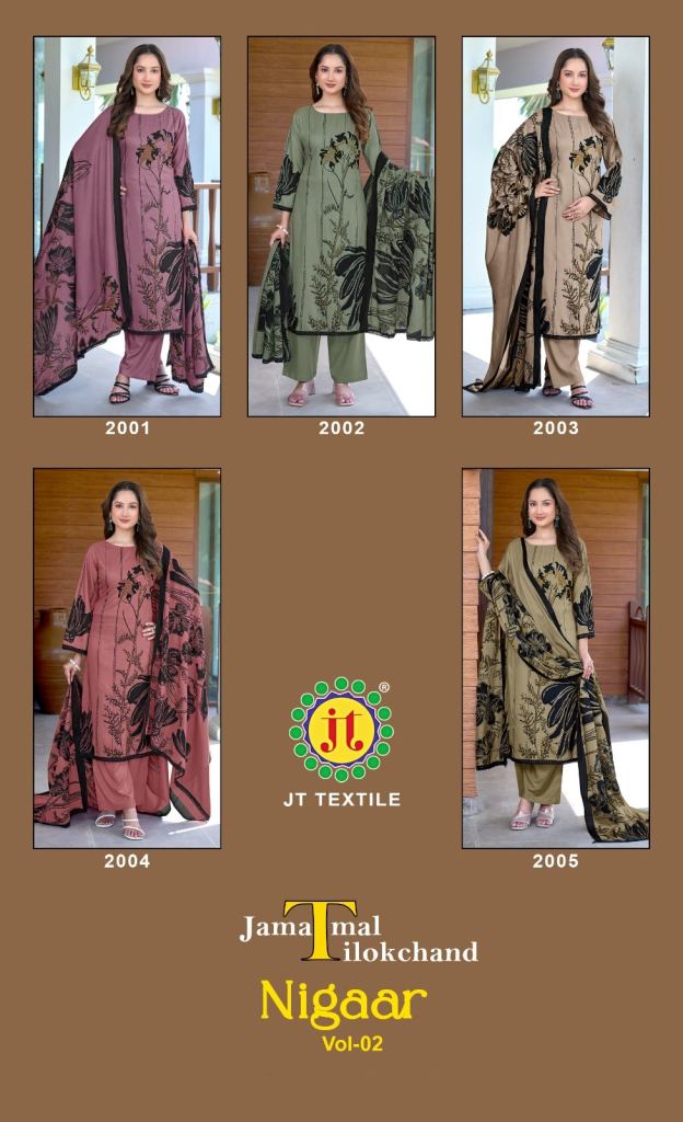 Jt Nigaar Vol 2 Rayon Foil Print Designer Dress Material Collection Full Catalog