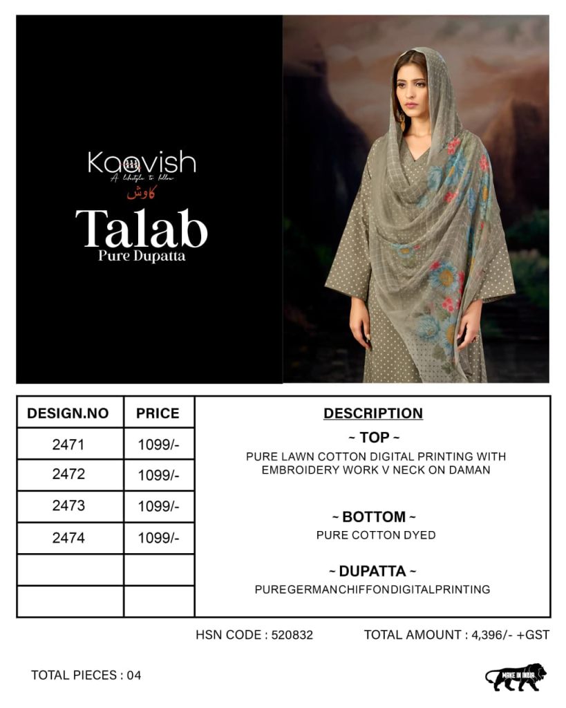 Kaavish Talab Lawn Cotton Digital Printed Dress Material Full Catalog