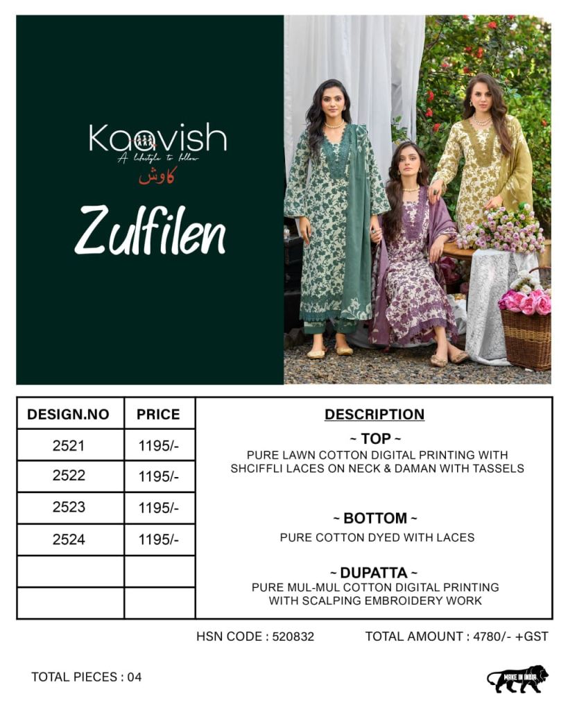 Kaavish Zulfilen Lawn Cotton Digital Printed Salwar Kameez Collection Full Catalog