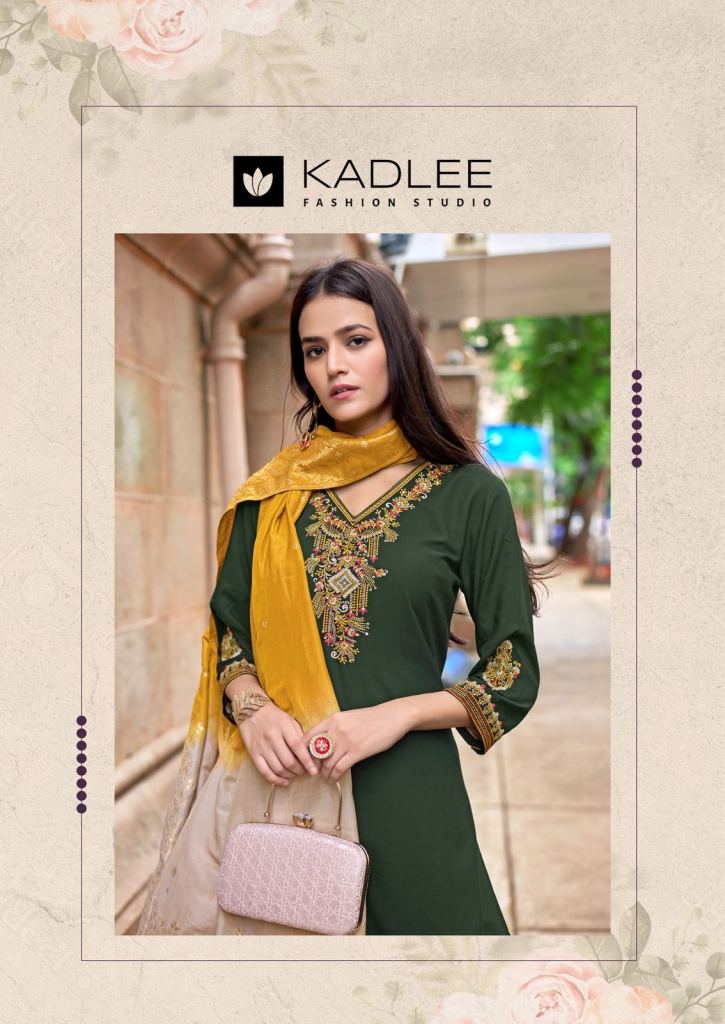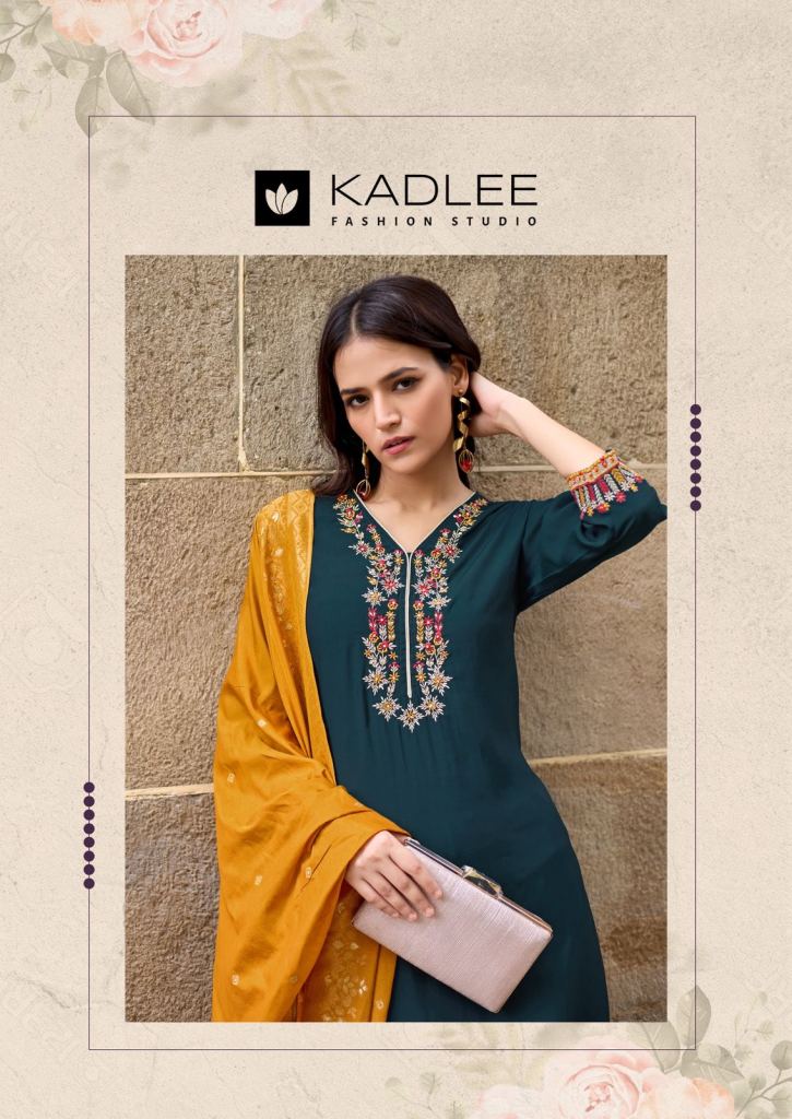 Kadlee Indriya Rayon With Thread work Kurti Pant And Dupatta Full Catalog