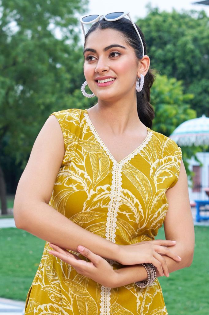 Fabric Description : Top/Bottom :- Rayon Printed With Attached Sleeve