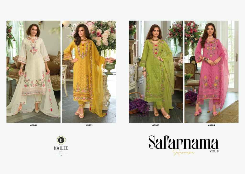 Kailee Safarnama Vol 8 Cotton Thread Worked Designer Kurti Pant And Dupatta Full Catalog