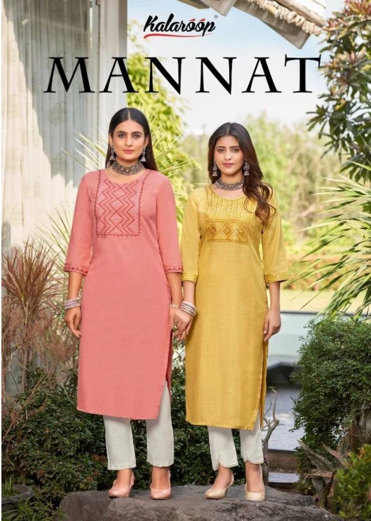 New Casual Wear Kalaroop Present Mannat Rayon With Sequence Kurti Collection