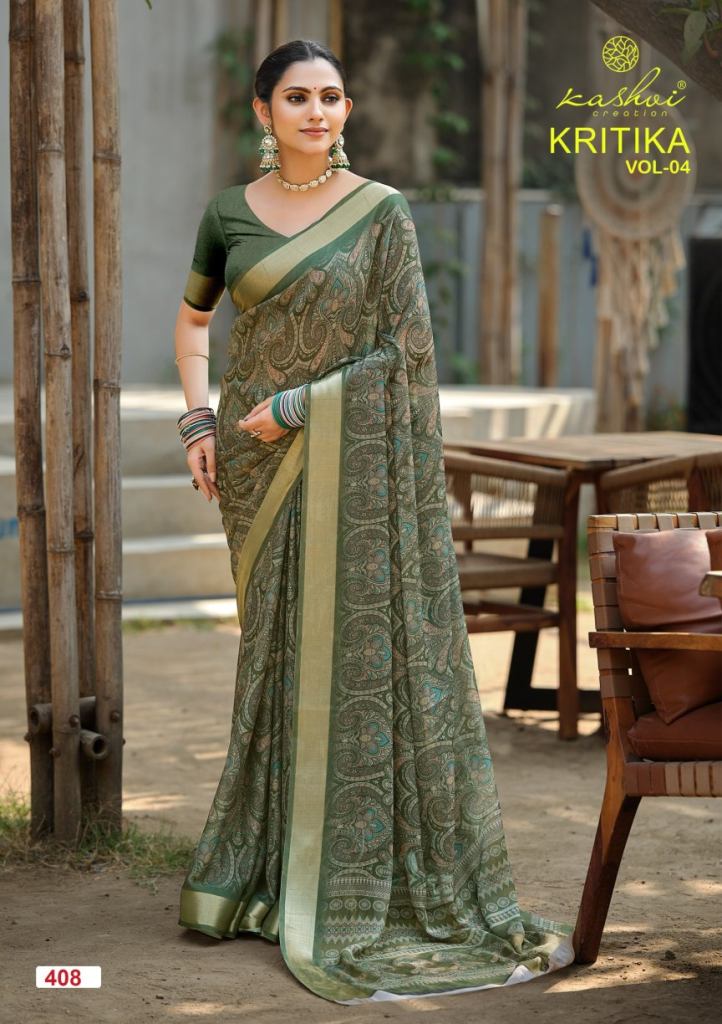 Kashvi Kritika Vol 04 Dull Moss Kasab Fancy Saree Collection Full Catalog