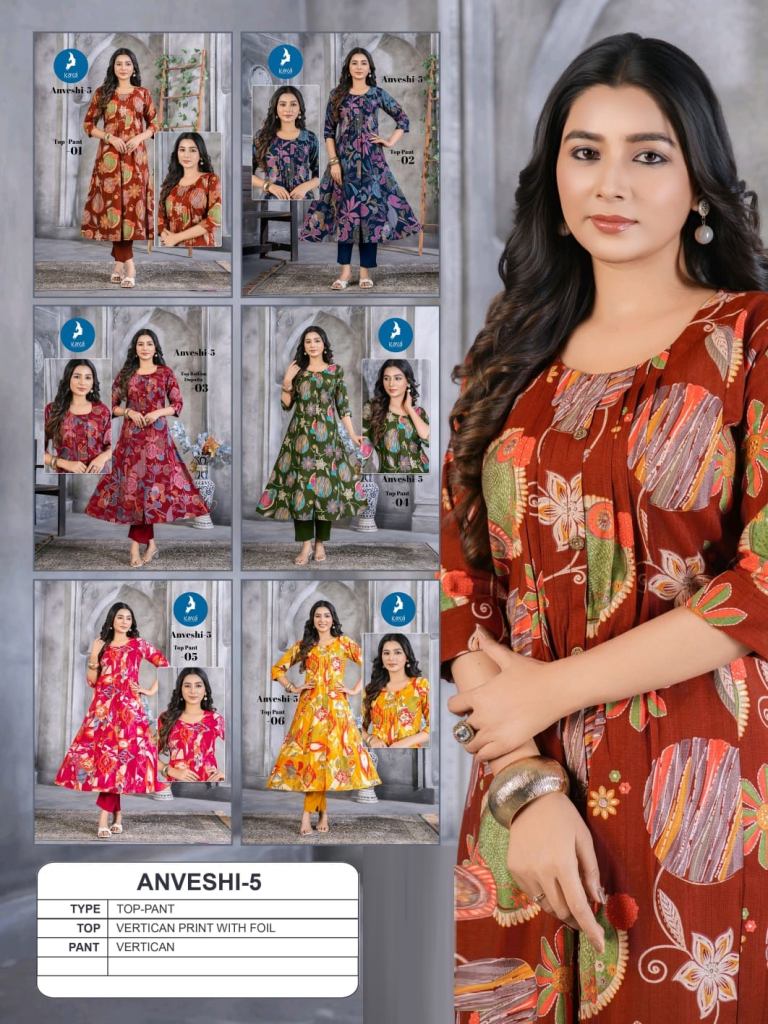 Kaya Anveshi Vol 5 Vertican With Foil Print Top And Bottom Collection Full Catalog