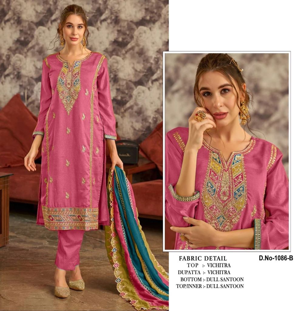 Buy Kb Super Hit 1086 Designer Vichitra Silk Embroidery Salwar Suits Available At Wholesale Rate