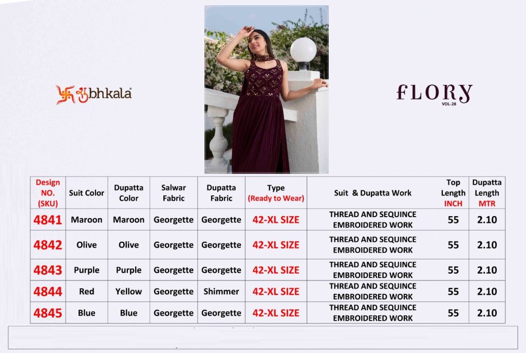 Kf Flory Vol 28 Exclusive Readymade Top Bottom Dupatta Collection. This set top fabric is soft georgette thread and sequins embroidery work, bottom and dupatta fabric is georgette. (XL-42)