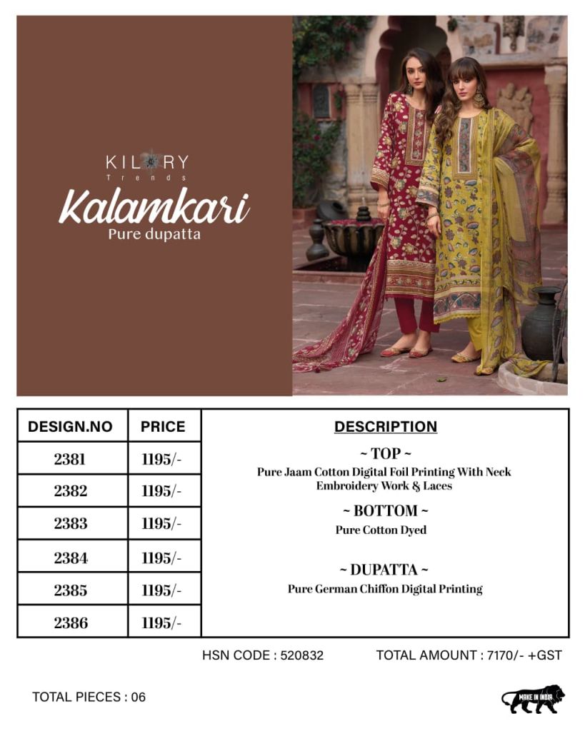 Kilory Kalamkari Jam Cotton Digital Foil Print With Work Salwar Kameez Full Catalog