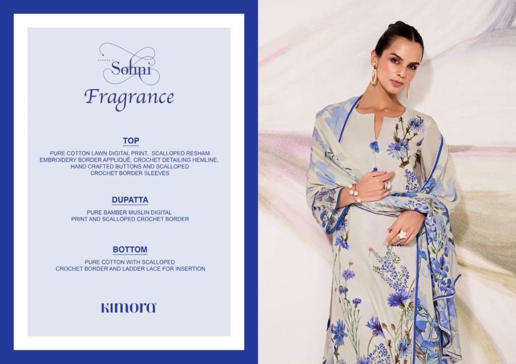 Kimora Sohni Fragrance Lawn Cotton Digital Print Embroidery Salwar Kameez Full Catalog