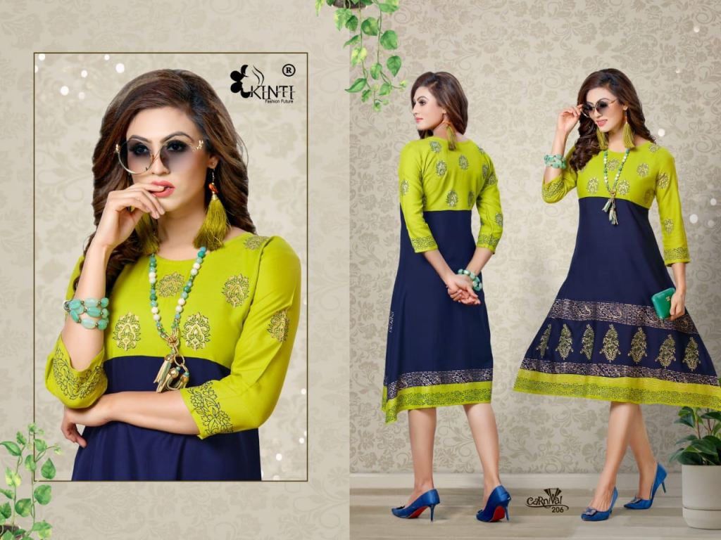 Kinti Carnival vol2 Fancy Kurtis Collection, this catalog is top very fine fabric rayon and designs are very fine look with inside and pattern all are very fine and design are with various types look.