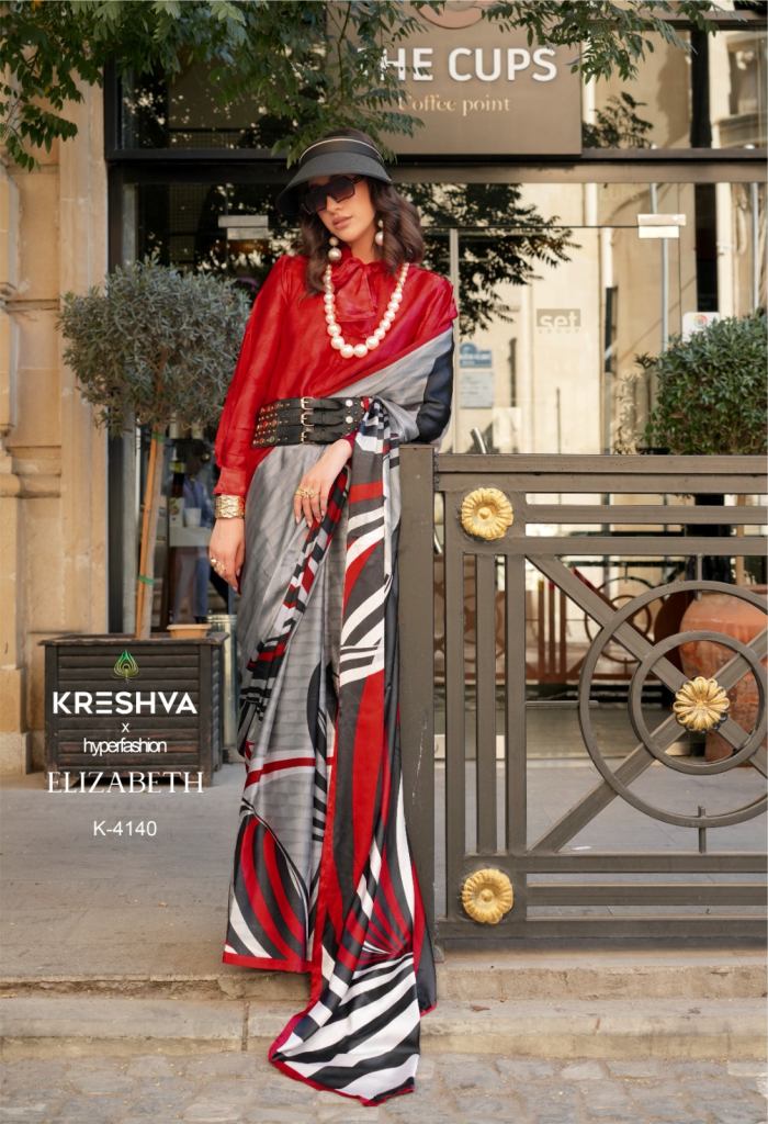 Kreshva Elizabeth Satin Silk Satya Paul Modern Design Saree Collection Full Catalog