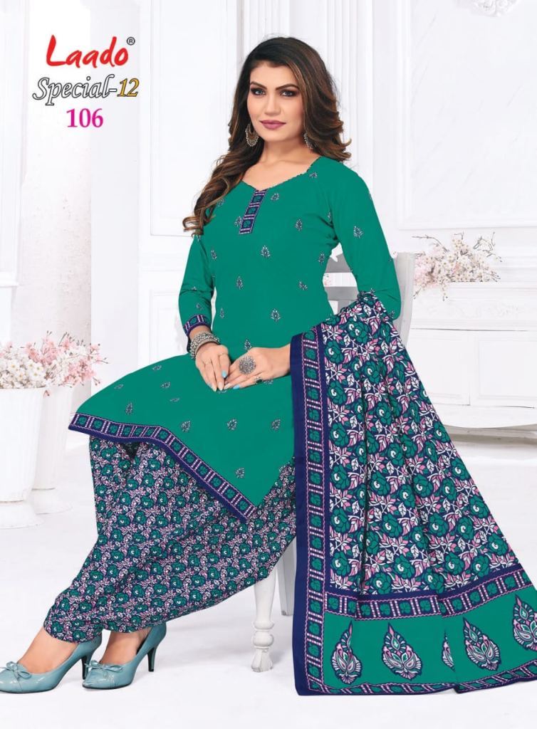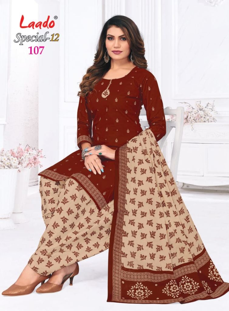 Laado Special 12 Daily Wear Cotton Printed Dress Material Collection. In this set top fabric is soft cotton printed, bottom is cotton printed and exclusive printed dupatta.