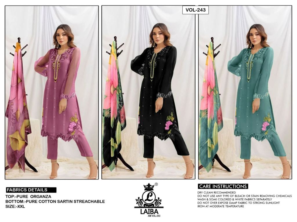 | NAME : | Laiba Am Vol 243 Organza Pakistani Ready Made Suits |