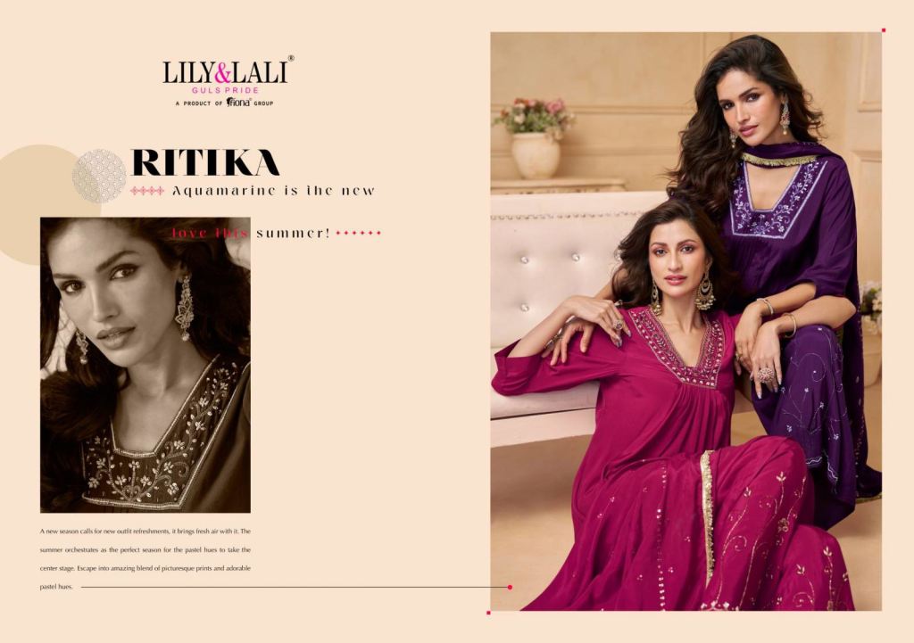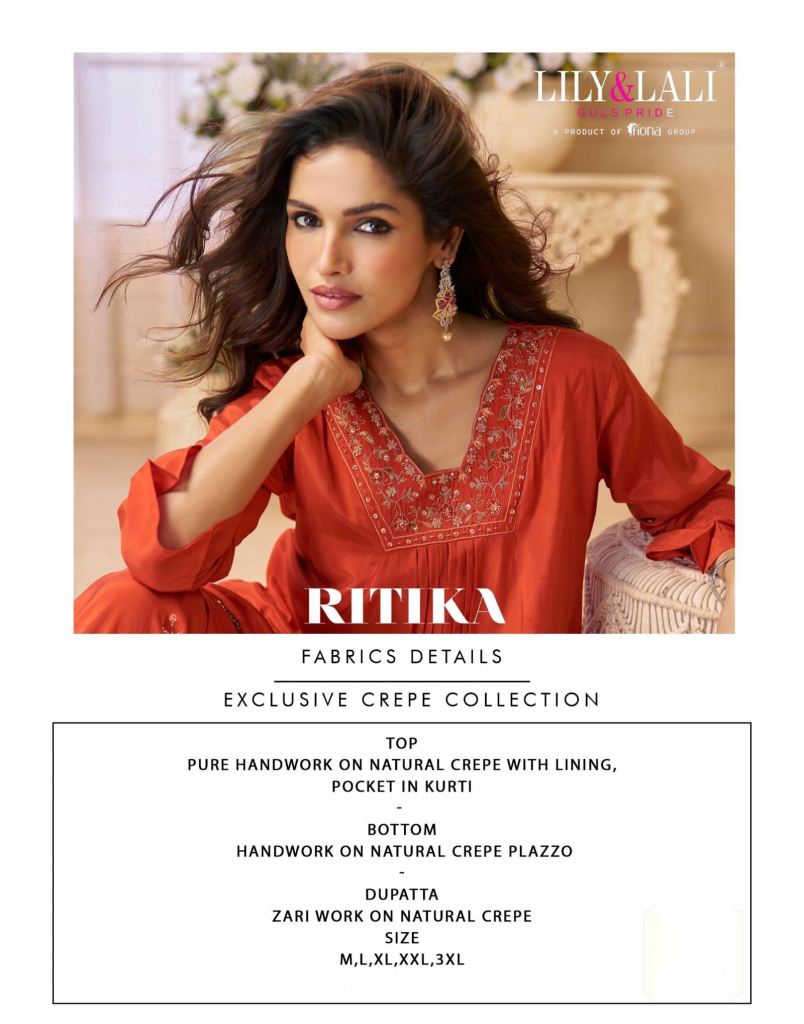 Lily And Lali Ritika Crepe Handwork Designer Festival Wear Kurti Pant And Dupatta Full Catalog