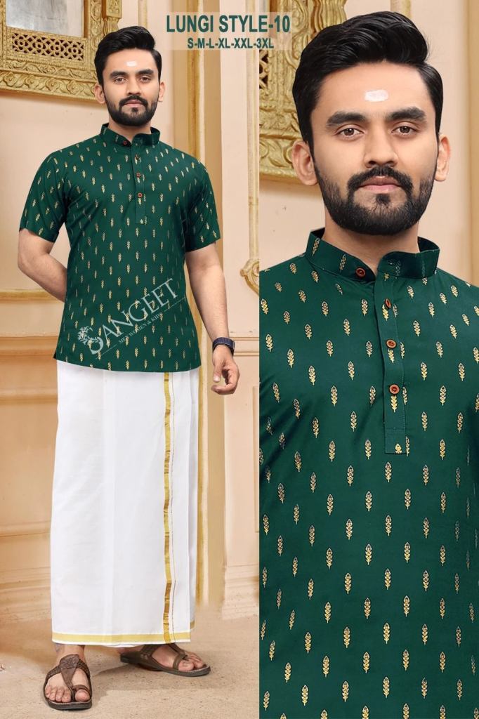 Festival Wear Lungi Style Vol 10 Rayon Gold Printed Mens Shirt Collection