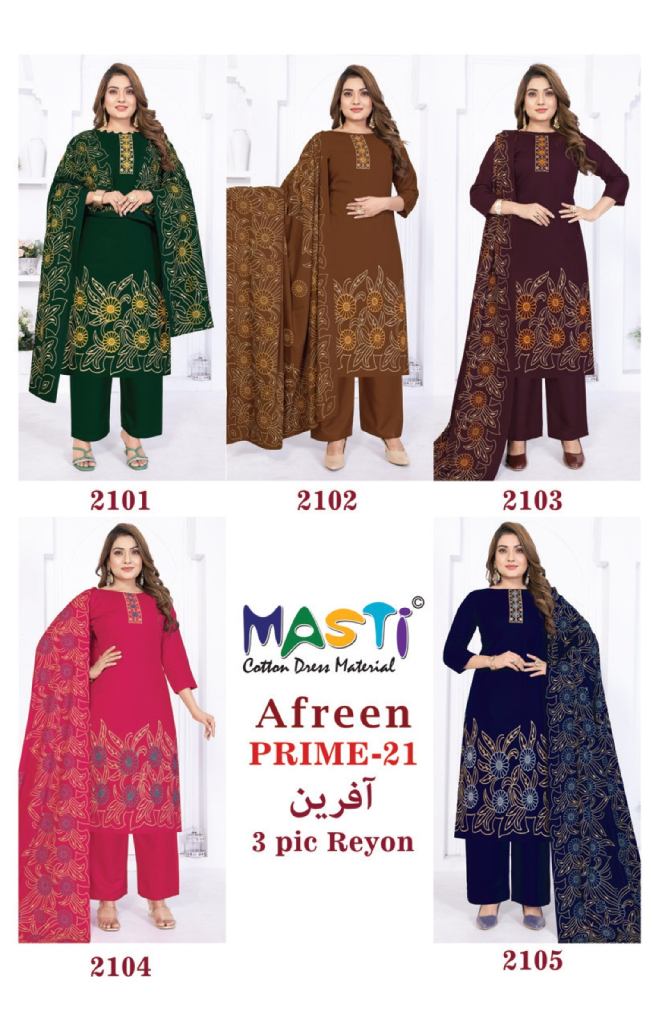 Masti Afreen Prime Vol 21 Rayon With Work Dress Material Collection Full Catalog