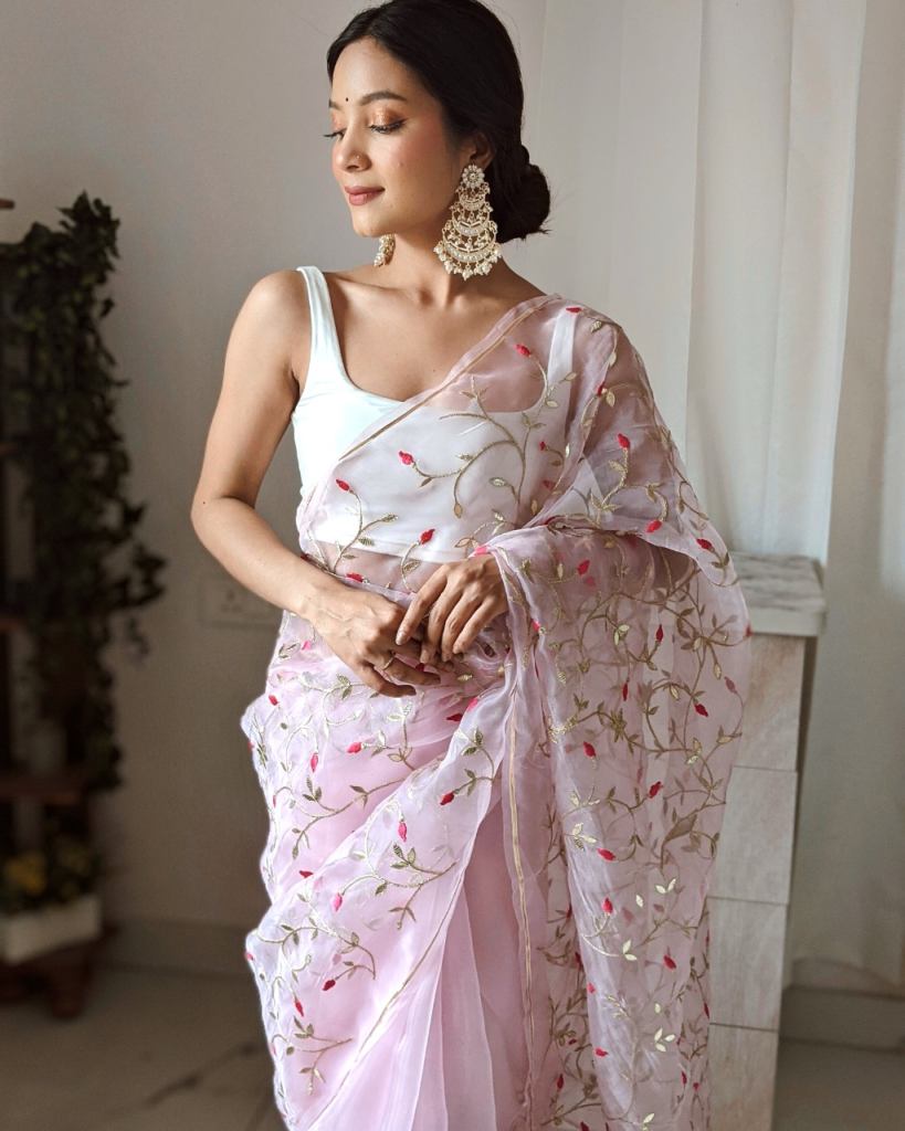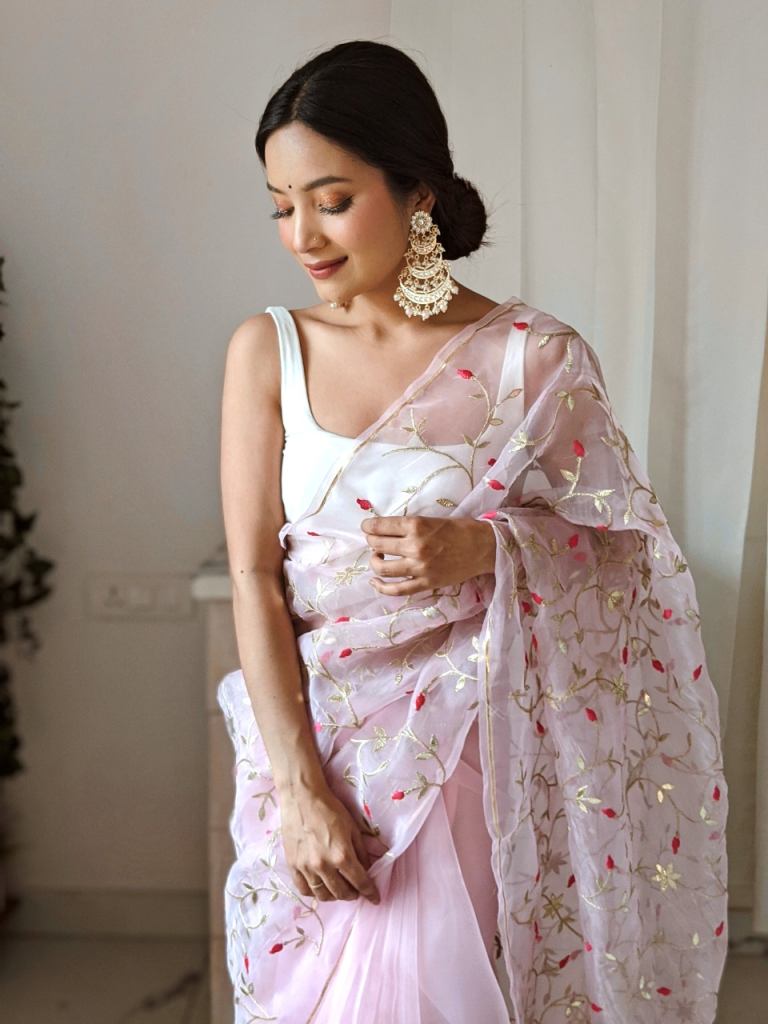 Organza Work Gotta And Embroidery Work Blouse will come in satin banglori fabric White in all sarees and fancy work also.