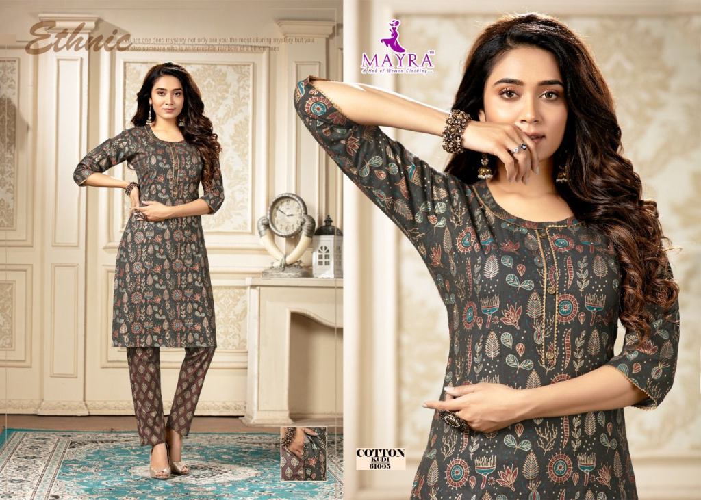 Buy Mayra Cotton Kudi Cambric Jaipuri Foil Casual Wear Kurti With Bottom