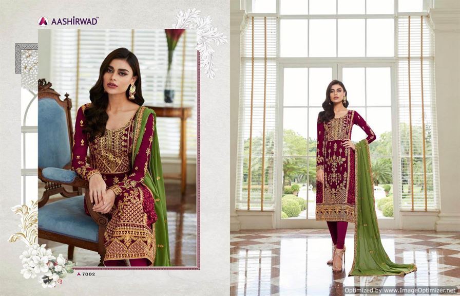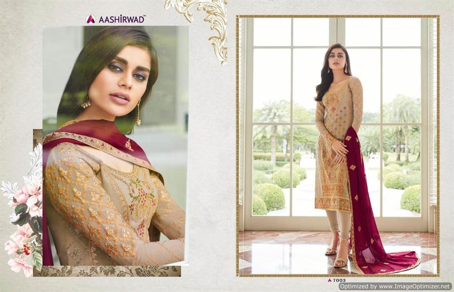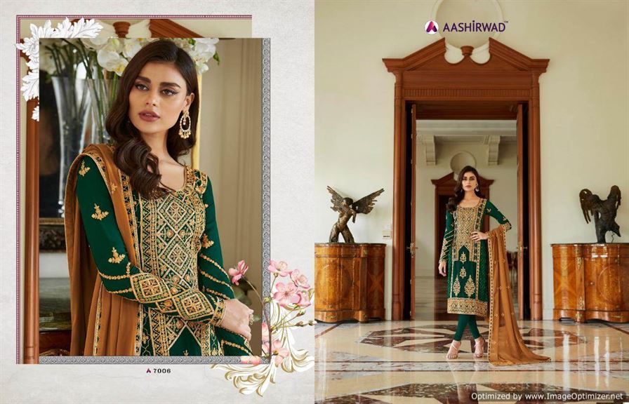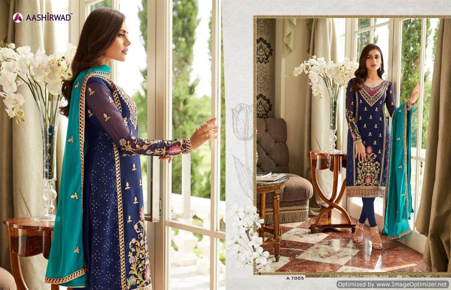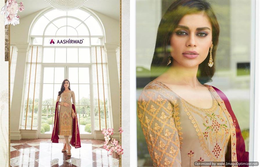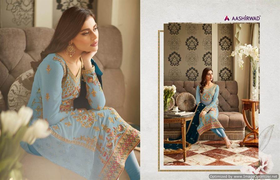 Aashirwad creation present of salwar suit | this catalogue name of mbroidered pakistani salwar suit | salwar kameez catalogue fabric top is real georgette | bottom in dull santoon | this available only full catalogue |