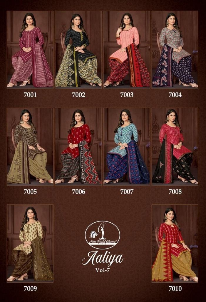 | NAME : | Miss World Aaliya Vol 7 Casual Wear Cotton Printed Dress Material Collection |
