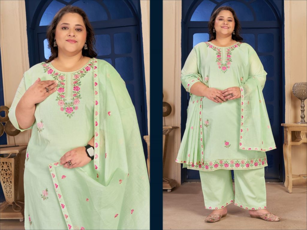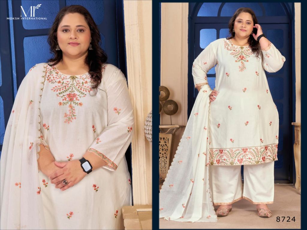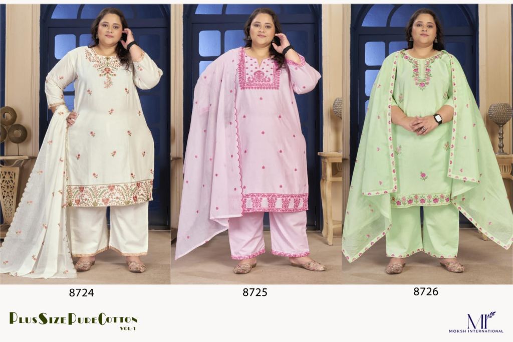 Moksh Plus Size Pure Cotton Vol 1 Cotton Embroidered Kurti With Bottom Dupatta Full Catalog