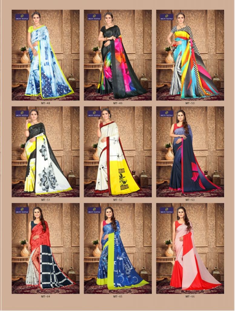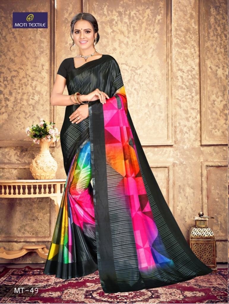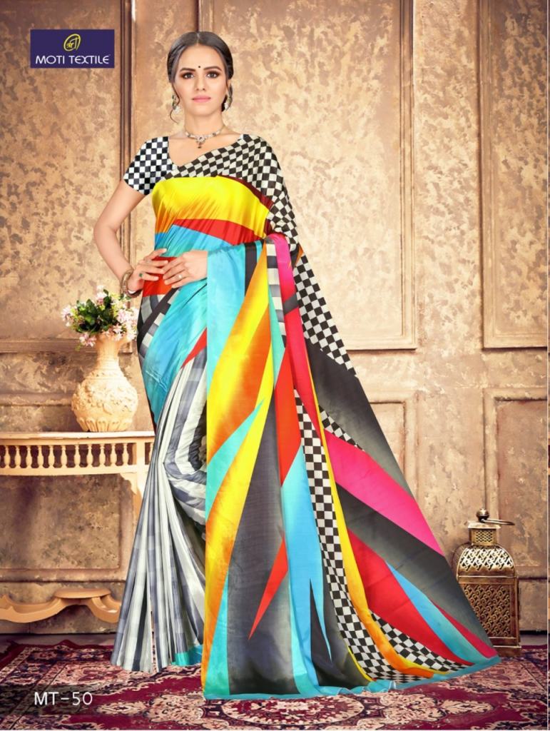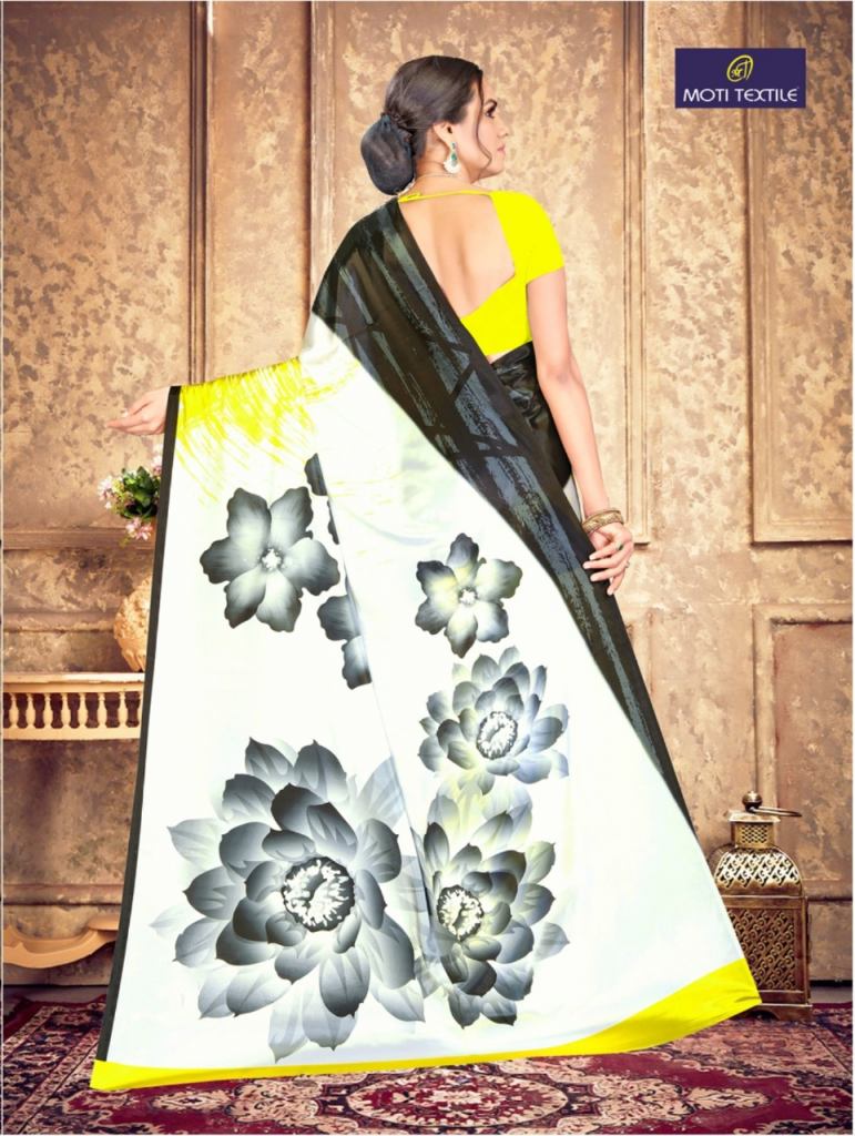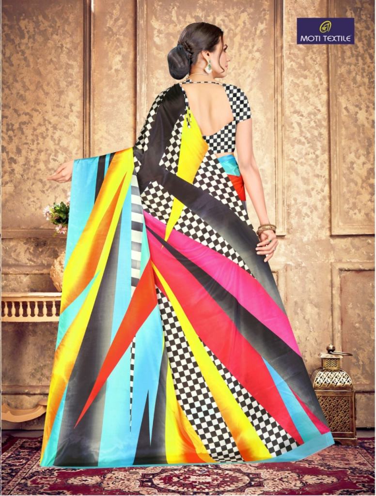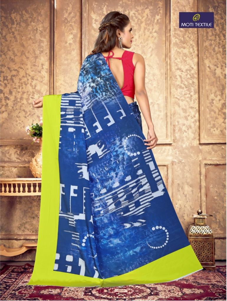 | NAME : | Moti Textile Presents Nayra Silk Crepe Digital Print Saree collection |