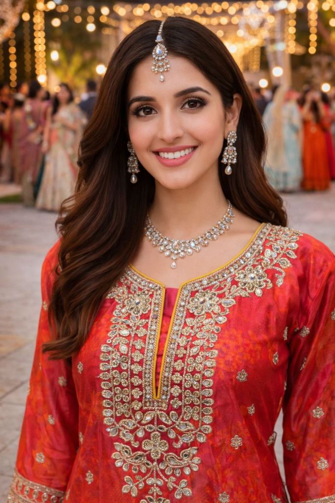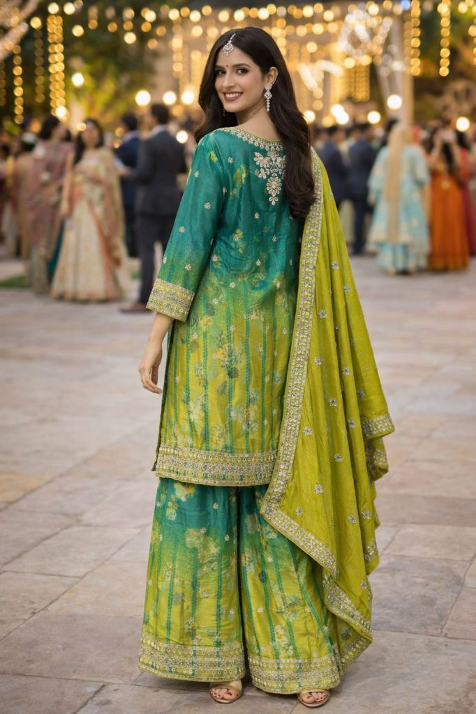 Fabric Description : Fabric :- Real Premium Chinon ( Heavy Embroidered And Mirror Worked Top With Palazzo And Dupatta ) | Free Size Stitched